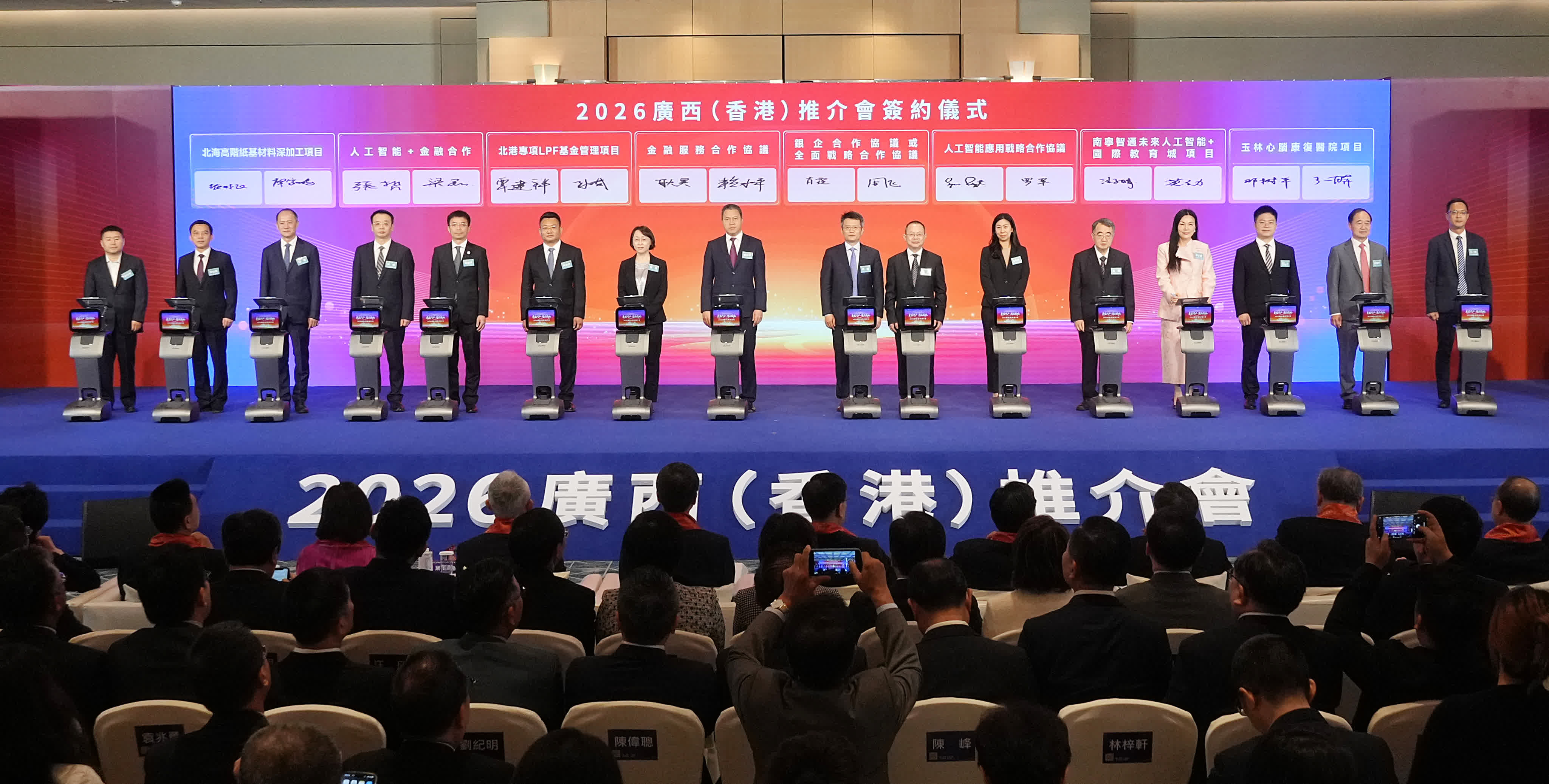 此外,桂港兩地政府在推介會上簽署兩份分別涵蓋人工智能、青年交流的合作文件。李家超表示,期望桂港兩地一同發揮優勢,持續拓展合作空間,進一步深化各領域合作,優勢互補,互利共贏,共同為國家高質量發展貢獻更大力量。