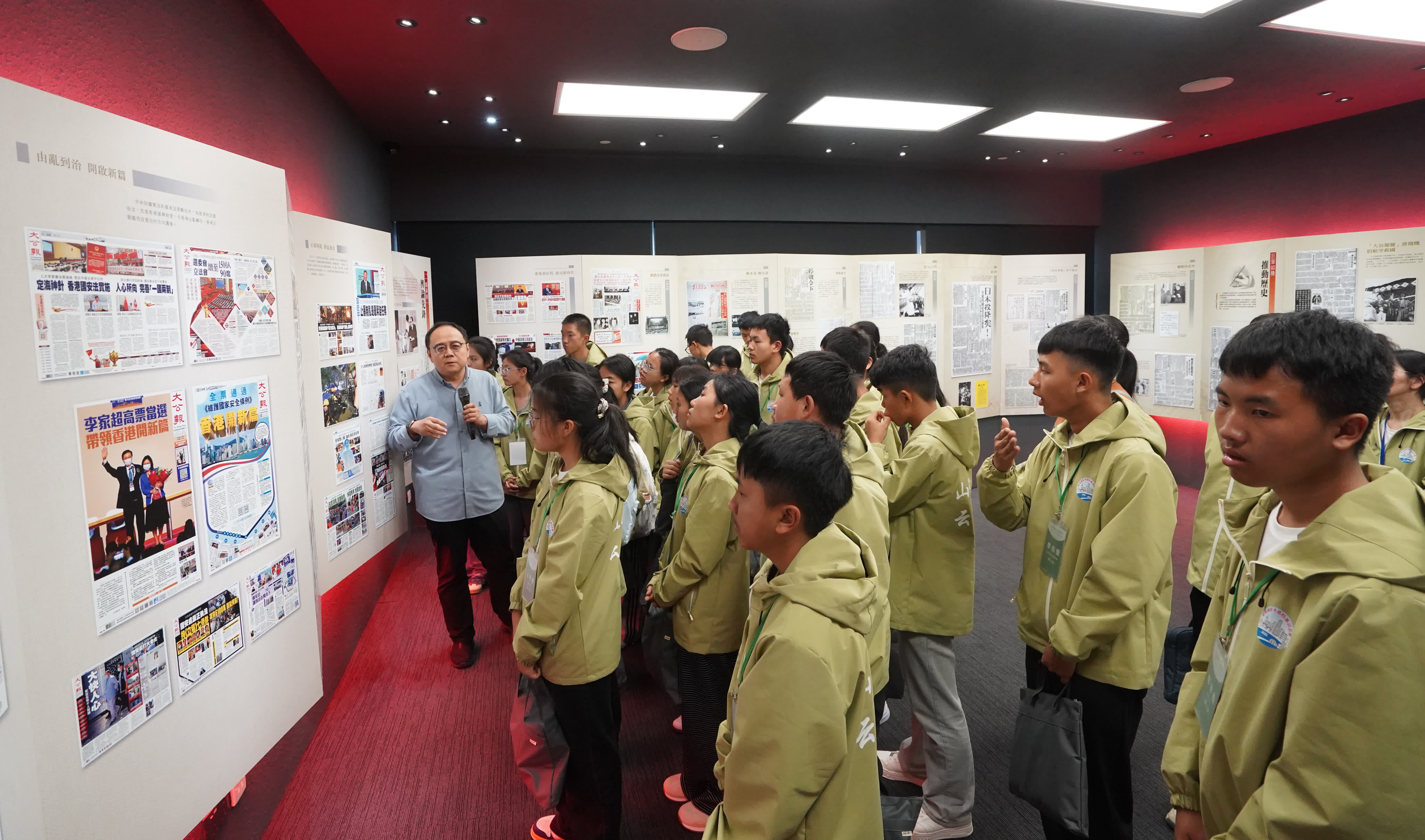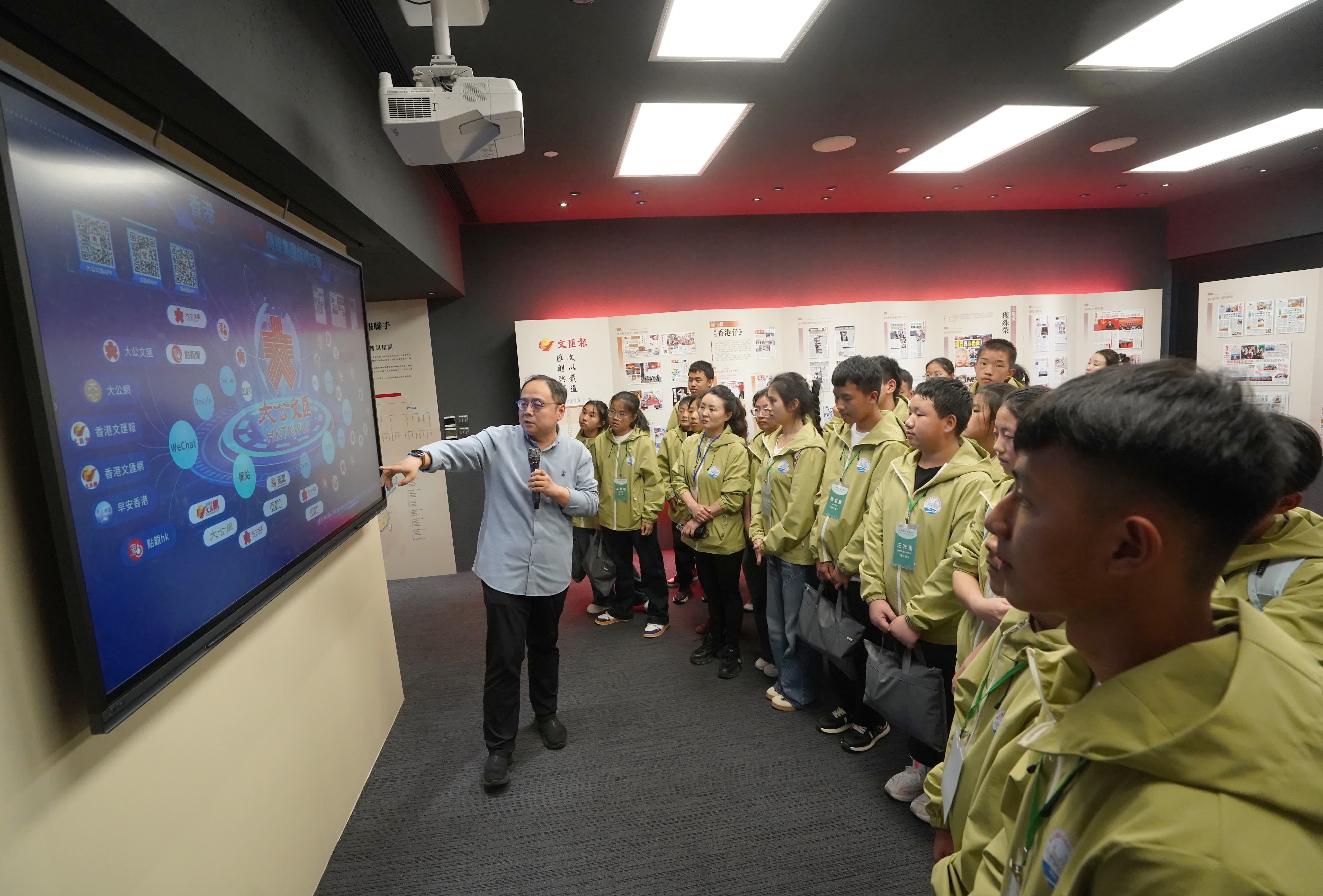 在大文集團的報史館歷程中,師生們全程專心聆聽、認真思考,現場互動積極,氛圍熱烈。