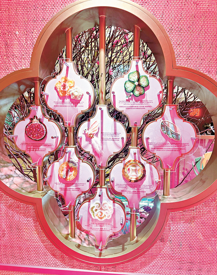 YLY Studio此次創作的「駿馬星馳 錦簇而至」藝術裝置,正是這種理念的體現。仔細端詳駿馬身上的刺繡,除了傳統的銅錢與祥雲,竟還有四葉草、甲蟲、石榴和羽毛等圖案。「大家對新春圖案似乎已經有了固定印象,我們想做些不一樣的。」二人嘗試融合中西方的幸運符號,讓不同文化背景的觀眾都能感受到美好寓意:石榴象徵豐盛、甲蟲代表好運、四葉草則是西方的幸運標誌……對他們而言,無論是東方還是西方的元素,都能傳遞吉祥、好運與富足的心意。