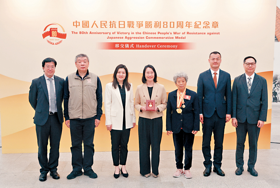 2025年是中國人民抗日戰爭暨世界反法西斯戰爭勝利80周年,中央政府饋贈「中國人民抗日戰爭勝利80周年紀念章」予香港特別行政區,作為博物館藏品及展覽的重要展示,以弘揚抗戰精神,深化社會對歷史的認識及愛國情懷。紀念章移交儀式於昨日下午在香港抗戰及海防博物館舉行,特區政府昨日表示,衷心感謝中央政府,今日(27日)起紀念章在香港抗戰及海防博物館的「風雨同舟 共建和平──粵港人民抗戰勝利八十周年展」專題展覽展出,市民可免費參觀。