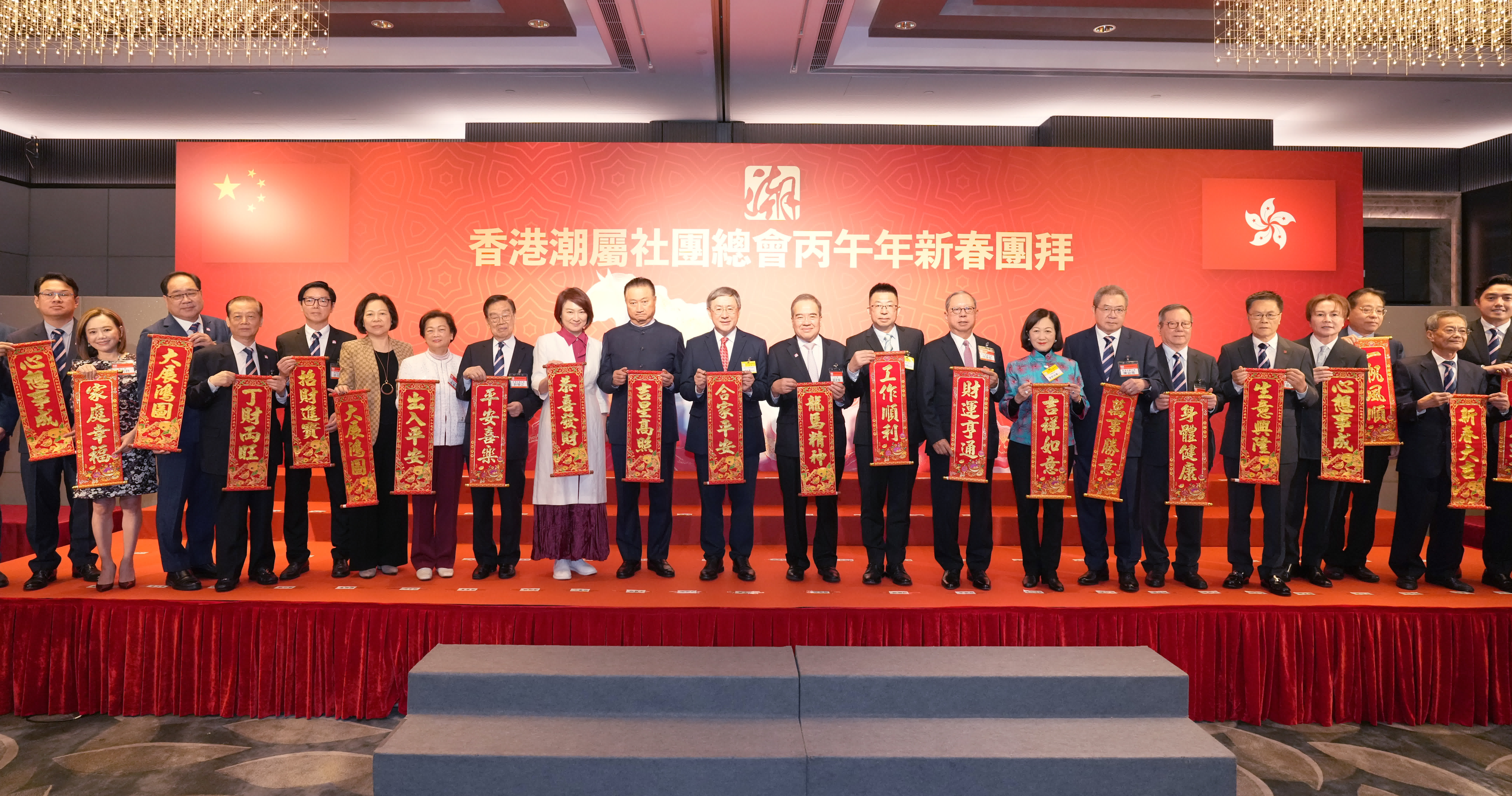 (大公報記者 吳俊宏)香港潮屬社團總會2026丙午馬年新春團拜今日早上(27日)在JW萬豪酒店舉行。政務司副司長卓永興、立法會主席李慧琼、行政會議召集人葉劉淑儀、民政及青年事務局副局長梁宏正等親臨主禮,同賀丙午馬年新春,場面溫馨熱烈。