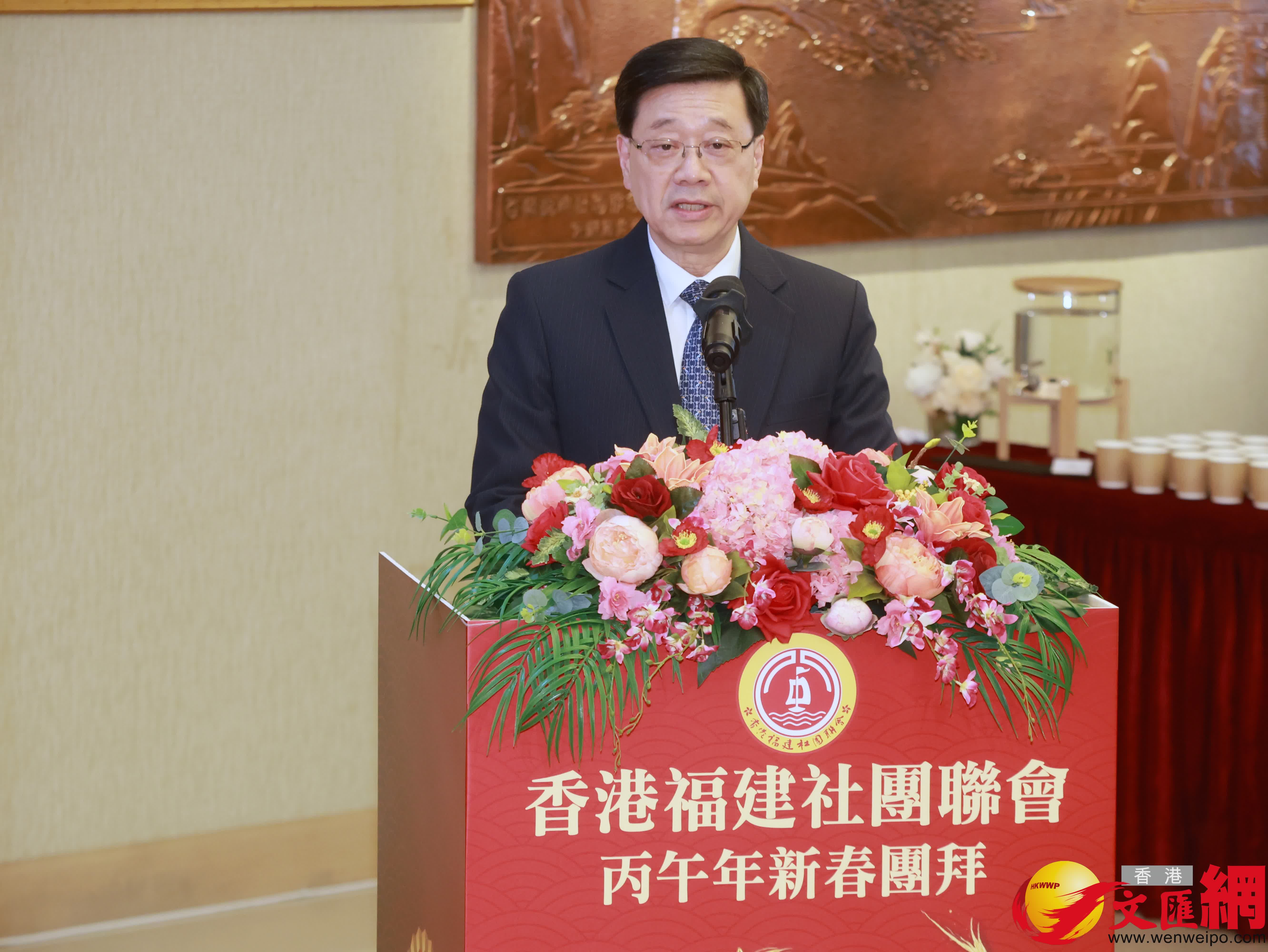 香港文匯報訊(記者 康敬)香港福建社團聯會今日(27日)舉辦丙午年新春團拜,特區行政長官李家超應邀主禮,他在活動上致辭表示,今年是國家「十五五」規劃的開局之年,香港會快馬加鞭,把握機遇,充分發揮在「一國兩制」下「背靠祖國、聯通世界」的獨特優勢,在金融、航運、貿易、創科等領域的工作將以更大力度在國家發展藍圖中發揮更大作用、貢獻更大力量。