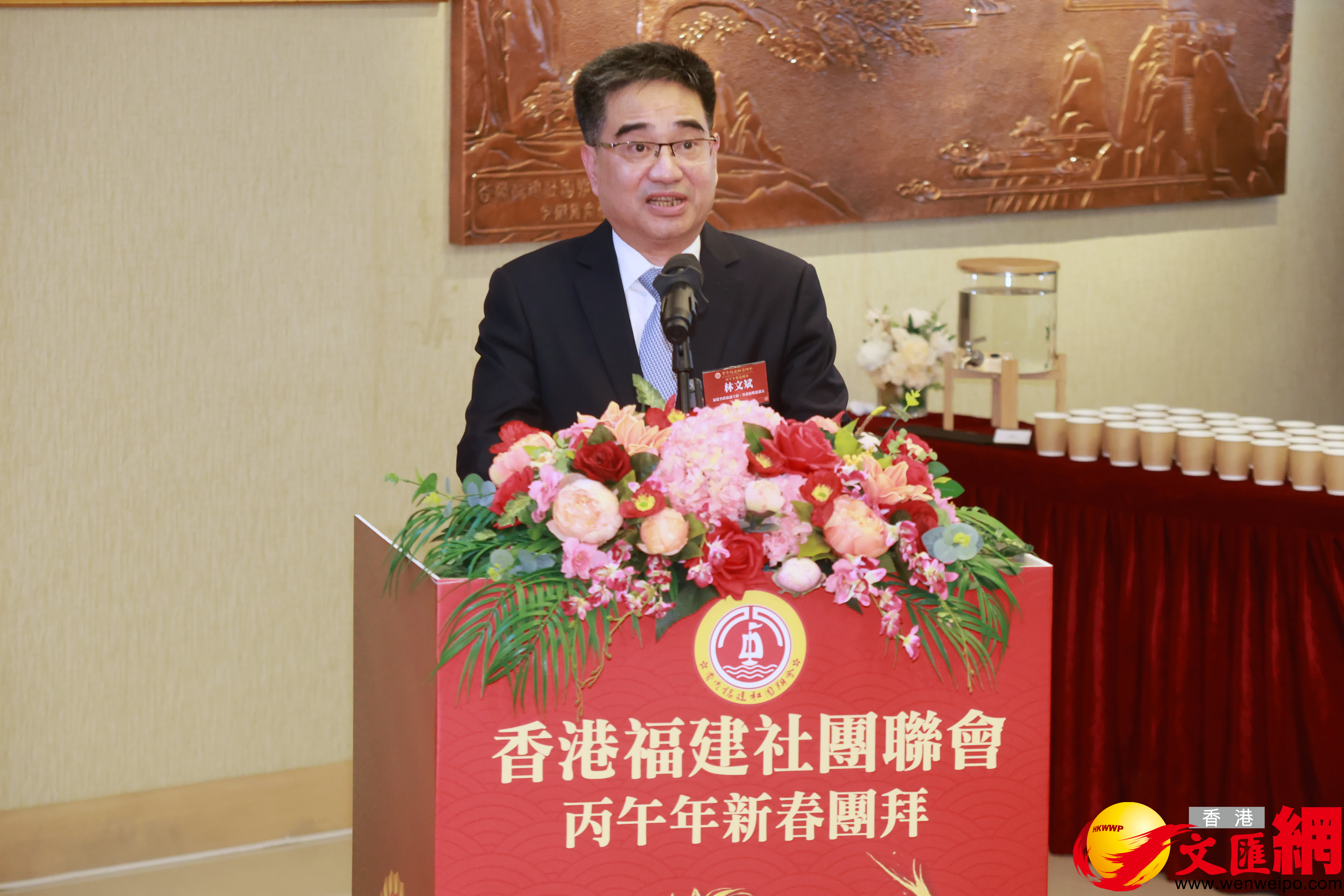 林文斌致辭提到,希望聯會繼續發揮橋樑紐帶作用,做愛國愛港的「壓艙石」,為維護香港長期繁榮穩定築牢根基;做閩港合作的「連心橋」,推動全方位、多領域、深層次交流合作;做福建形象的「推介者」,在提升文化影響力上久久為功。