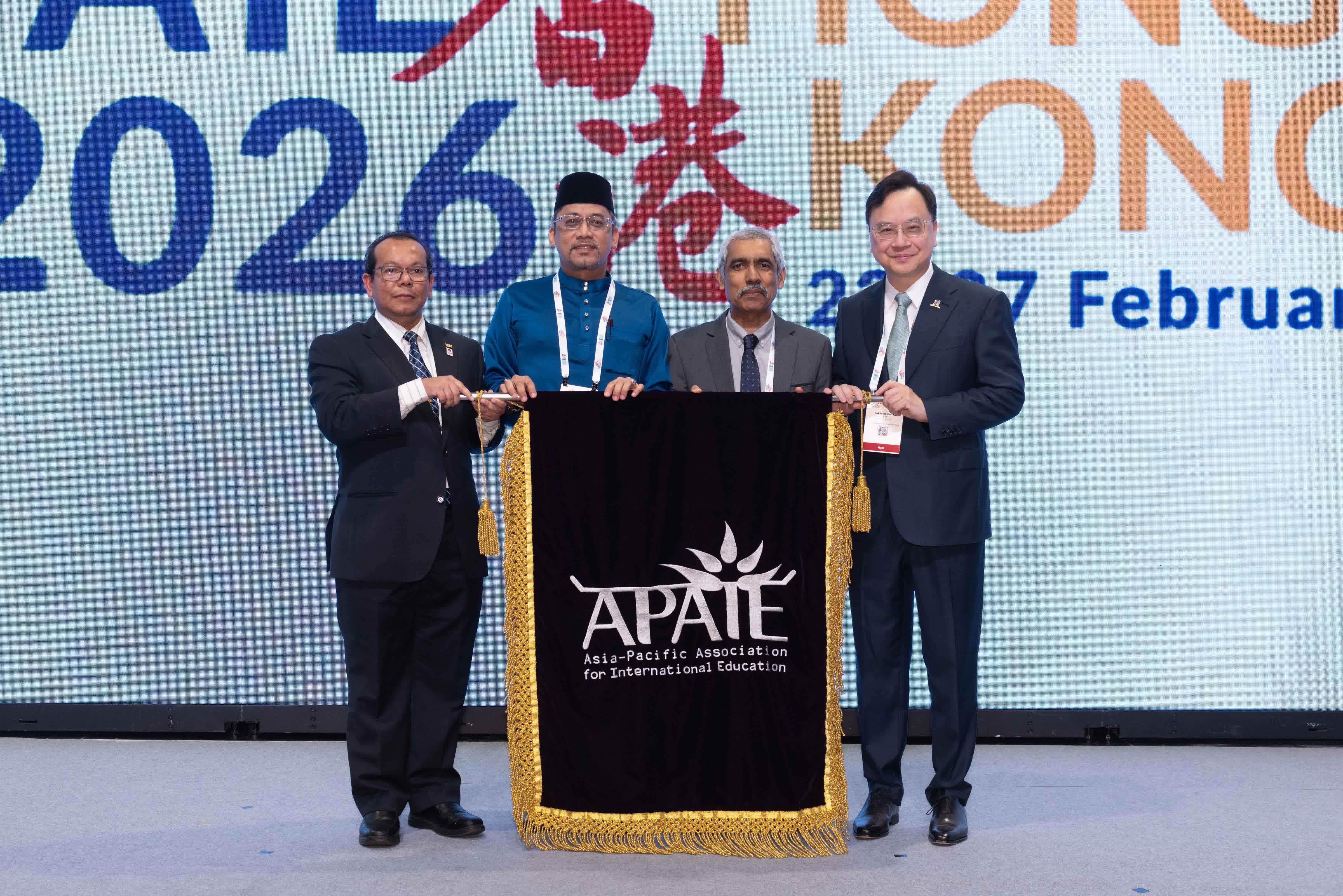 在閉幕典禮上,大會舉行APAIE年會旗幟移交儀式。盧煜明代表今屆年會主辦單位,先把APAIE會旗交予Venky Shankararaman,會旗隨即轉交予下屆主辦單位──馬來西亞理工大學。馬來西亞理工大學校長Mohd Shafry bin Mohd Rahim表示,馬來西亞曾於2019年於吉隆坡舉辦APAIE年會,今次再度獲得主辦權,對當地的專業精神、共融理念及文化底蘊予以肯定,亦展現了作為促進全球學術交流的實力,「馬來西亞以多元而深厚的信仰與文化傳統為根,秉持善良、謙遜與仁愛的核心價值;我們的優勢不止於深厚的知識素養,更在於穩固的道德與精神基礎──以智慧與信念引領創新、推動人類共同價值。」