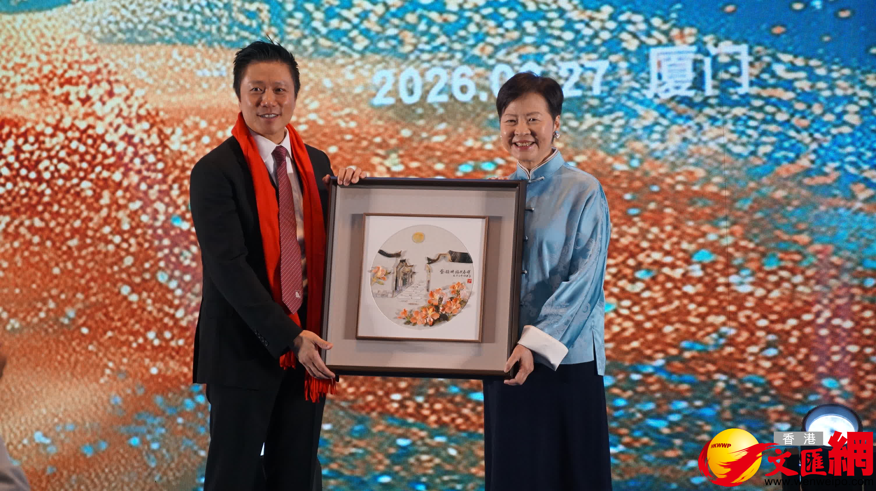(香港文匯網記者 蔣煌基)2026年在閩港人新春聚會暨福建省香港商會六周年慶晚宴27日在福建廈門舉行。香港特別行政區第五任行政長官、福建省香港商會永遠榮譽會長林鄭月娥出席活動並致辭,她表示希望閩港兩地繼續攜手同心,秉持互利共贏的原則,不斷深化各領域交流合作,共同為國家的發展大局貢獻力量。