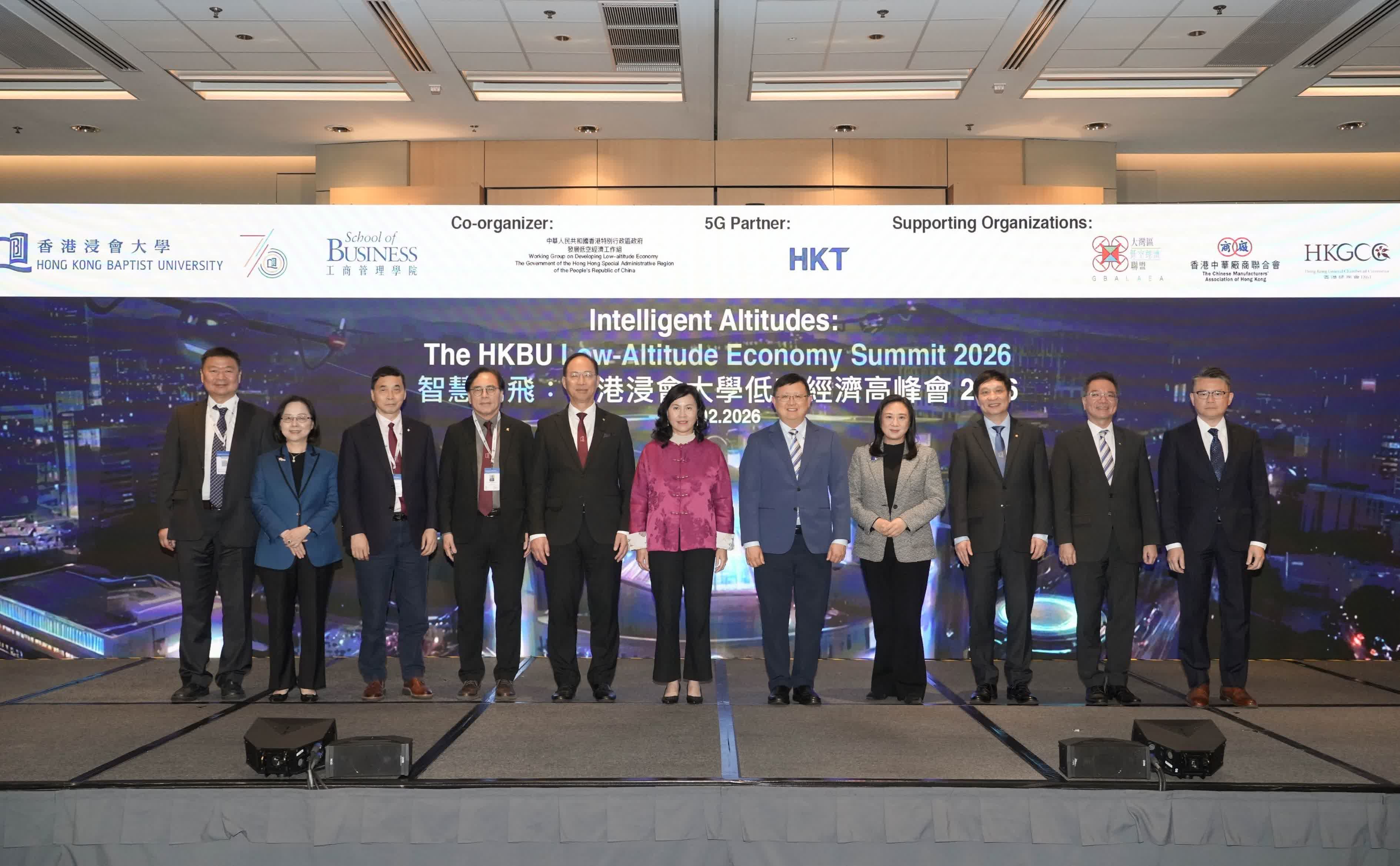 是次峰會為浸大今年慶祝70周年校慶的重點活動之一,由特區政府發展低空經濟工作組協辦,並獲大灣區低空經濟聯盟、香港總商會、香港中華廠商聯合會,以及香港零售管理協會全力支持。運輸及物流局局長陳美寶、大灣區低空經濟聯盟創會會長葛珮帆。香港總商會主席陳瑞娟、香港中華廠商聯合會會長盧金榮、香港零售管理協會執行總監羅振邦、浸大校董會暨諮議會主席黃英豪、浸大校長衞炳江與多名學者任主禮嘉賓。
