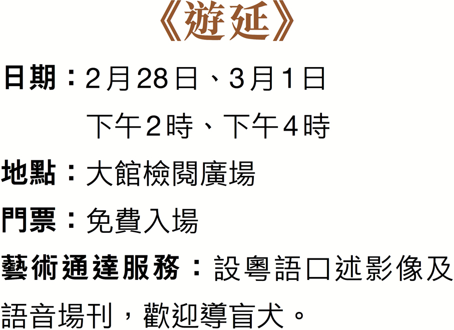 由香港藝術節及香港賽馬會慈善信託基金聯合呈獻的「無限亮」2026,將呈獻全新大型戶外舞蹈作品《遊延》。作品由「無限亮」策劃,與香港舞蹈團共同製作,並由香港舞蹈團與屢獲殊榮的中國香港輪椅體育舞蹈運動協會首度共同編舞,兩團舞者透過肢體的互動、延伸與回應,探索身體的多重意義,重新審視我們對生命與差異的理解。作品靈感源自《莊子》中<德充符>與<逍遙遊>的哲學內涵,引領觀眾由「看見彼此」,進而「看見自己」,最終邁向視角與心靈的逍遙。