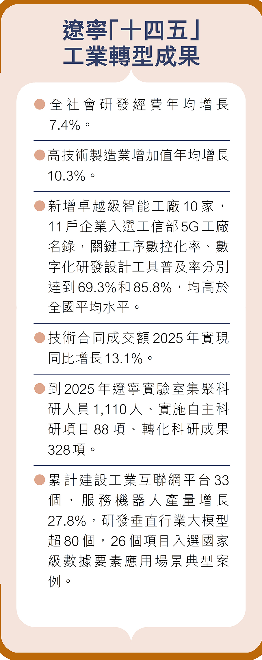 (香港文匯報記者 于珈琳 遼寧報道)從傳統工業基地到智造高地,遼寧正以新質生產力重塑「老字號」產業的時代底色。隨着工業互聯網的深度滲透,鋼鐵、機械、裝備製造等產業如今煥發新生:一項項「卡脖子」技術在這裏攻克,拉動了行業整體的智能化升級;一大批國之重器在這裏誕生,「國和一號」「華龍一號」核主泵問世,殲-35劃過長空。「十四五」期間,高技術製造業年均增長10.3%、4大集群——航空、機器人、工業母機、綠色石化躋身「國家隊」,14.7萬座5G基站全面鋪開,152個智能工廠晝夜不息……都印證了遼寧傳統工業的轉型決心。
