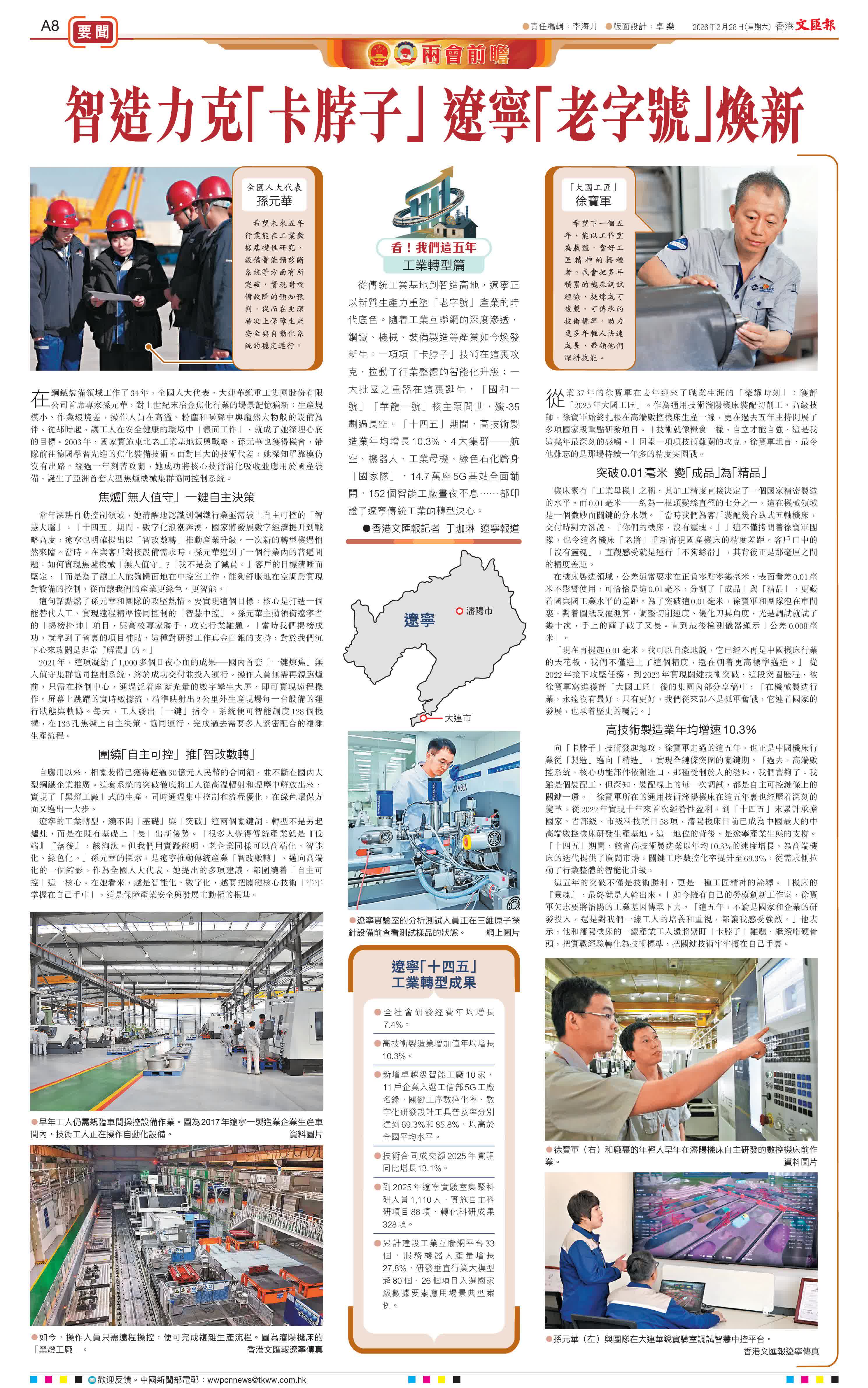 這五年的突破不僅是技術勝利,更是一種工匠精神的詮釋。「機床的『靈魂』,最終就是人幹出來。」如今擁有自己的勞模創新工作室,徐寶軍矢志要將瀋陽的工業基因傳承下去。「這五年,不論是國家和企業的研發投入,還是對我們一線工人的培養和重視,都讓我感受強烈。」他表示,他和瀋陽機床的一線產業工人還將緊盯「卡脖子」難題,繼續啃硬骨頭,把實戰經驗轉化為技術標準,把關鍵技術牢牢攥在自己手裏。