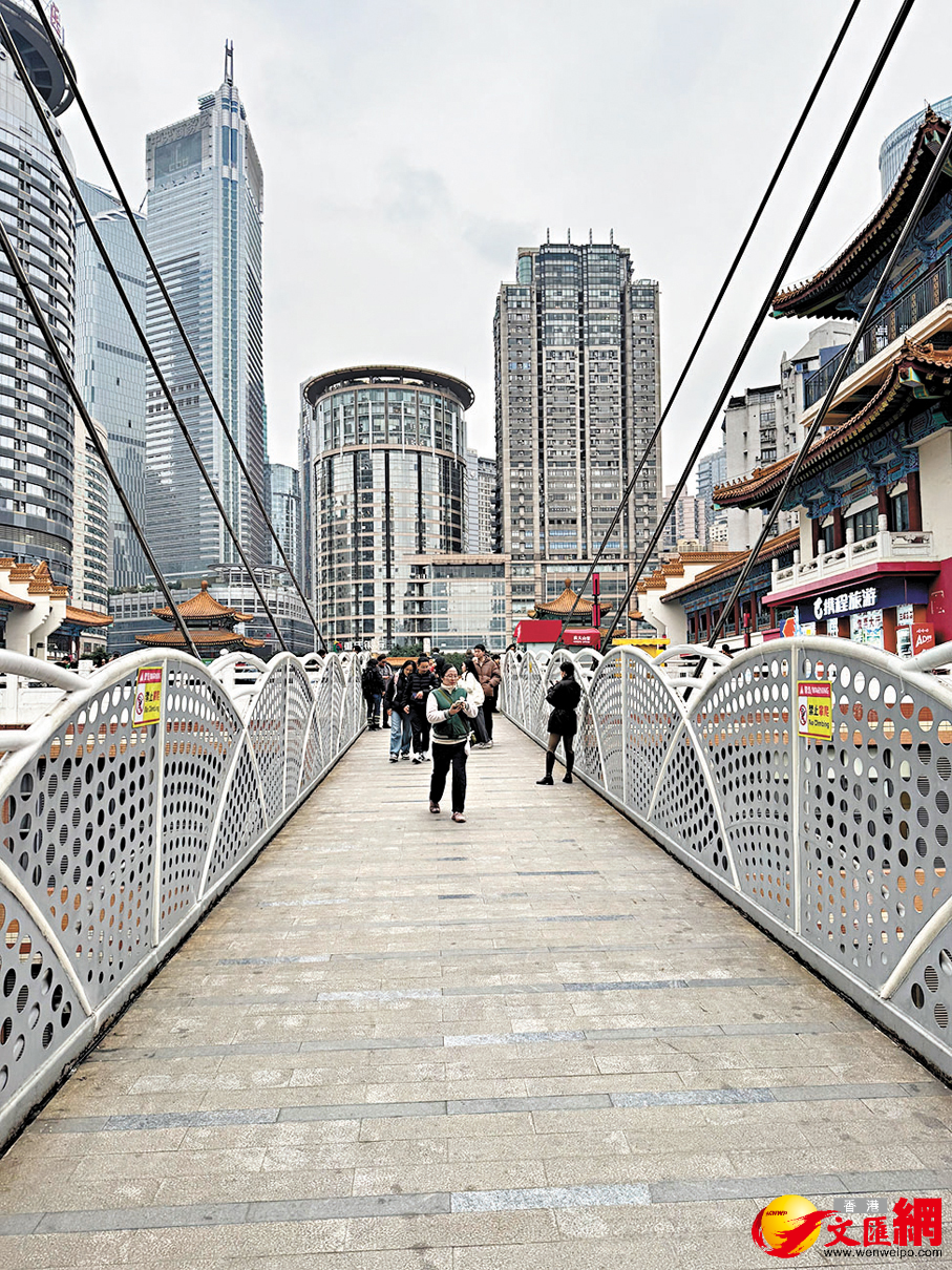 電影《少年的你》中,小北獨自走過臨江門的魁星樓的一刻,成為觀眾久久難忘的回憶。網上衝浪的時候,有時候也會看到一些「為什麼不能在重慶跑酷,因為你不會知道你到底在哪一層」。作為8D城市的重慶,最強烈的印象,想必就是你以為你身在平地,但其實你在半空,非常立體,也是重慶相比其他城市,無法模仿的地方,兩道懸空天橋和旁邊高樓連為一體,是新晉的「網紅」景點。不過先旨聲明,恐高人士還是要留神,不然就腿軟了。