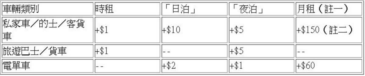 註二:部分停車場提供的士月租/季租優惠收費,該類月租將上調$120,季租則按月租的加幅率上調。
