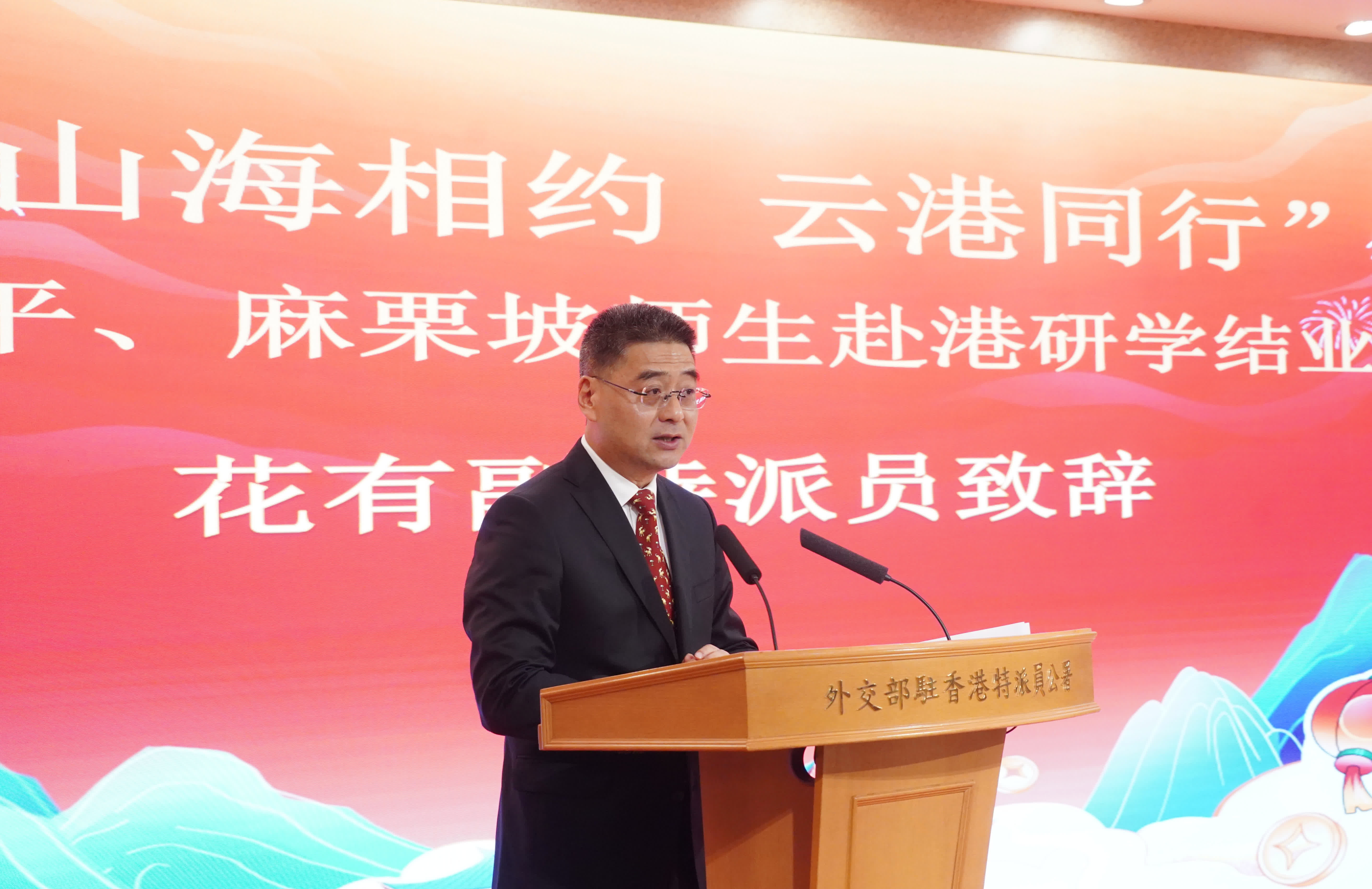 外交部駐港公署副特派員花有於典禮表示:「同學們跨越山海來港交流,親身感受『一國兩制』下香港的繁榮穩定與開放包容。願大家以此次研學為契機,厚植家國情懷,將所學所感化為奮進動力,讓個人成長與民族復興同頻共振。」他表示,公署會持續深化雲港青少年交流,共築兩地情誼橋樑。