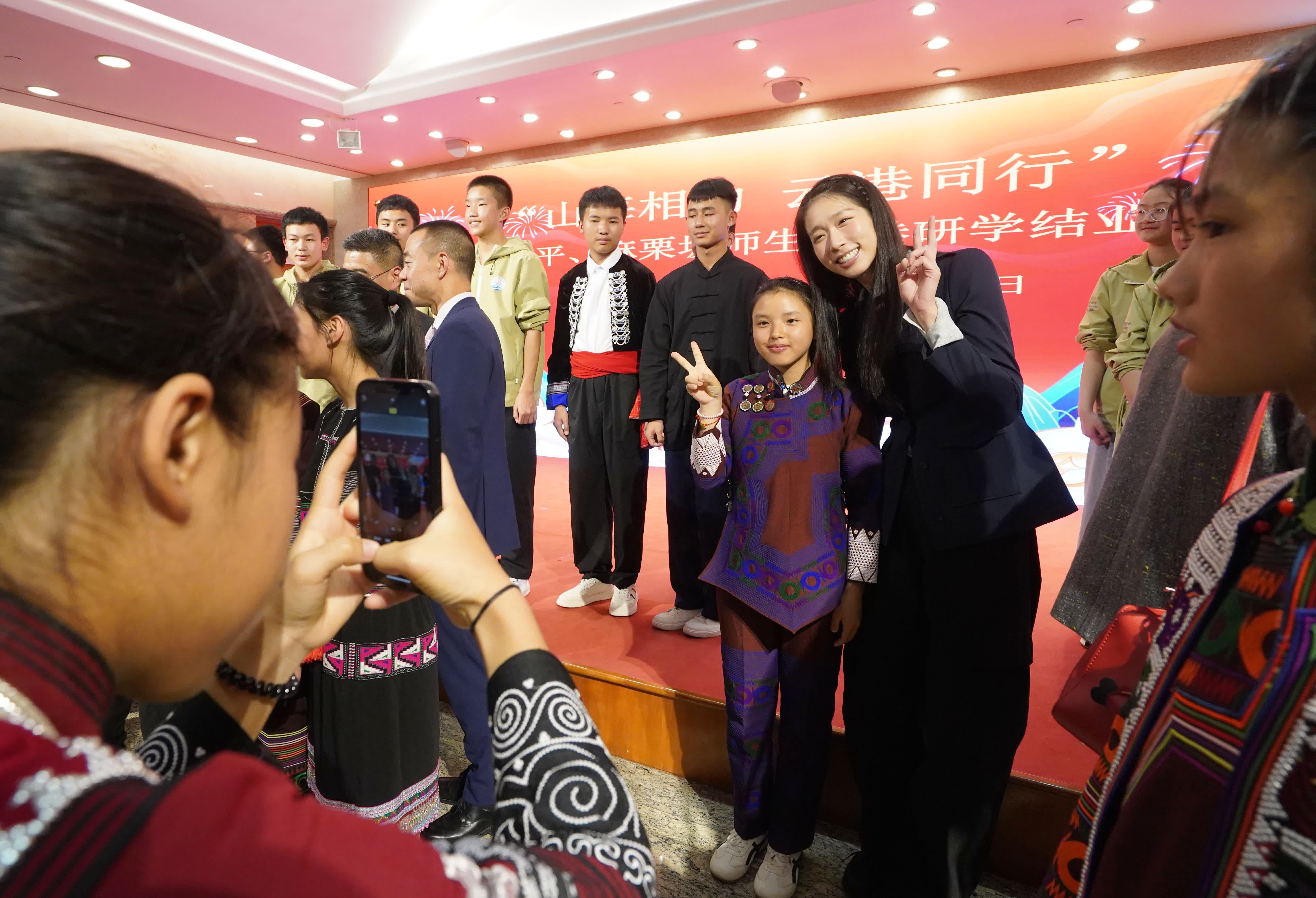 結業典禮現場氣氛熱烈、歡樂溫馨。雲南同學們帶來詩朗誦與民族舞蹈表演,以真摯動人的演出展現少年風采,表達在港研學所感所悟,傳遞「少年強則國強」的青春信念。全場師生與嘉賓一同歡樂互動、載歌載舞,節目充分展現此次研學的豐碩成果。主辦方為全體研學同學頒發研學證書,活動圓滿落幕。