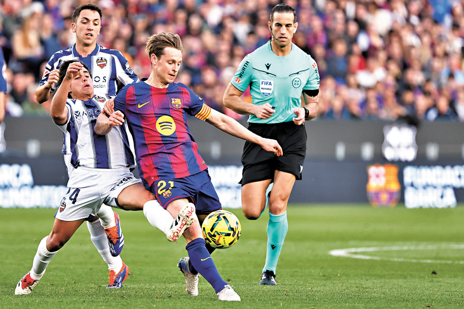 香港文匯報訊 據新華社報道,西甲進入關鍵階段,豪門巴塞隆拿卻遭受重創。球隊於上周五(27日)確認,中場核心之一法蘭基迪莊於訓練中受傷,將缺陣超過一個月。