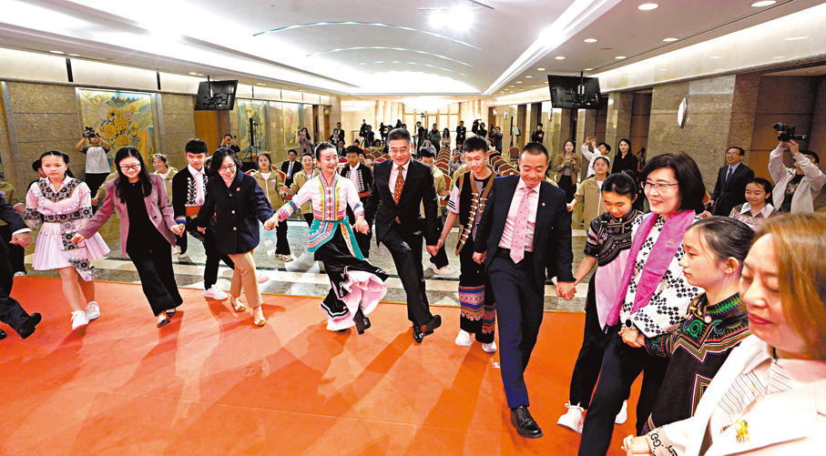 在昨日結業禮上,雲南同學們帶來詩朗誦、雙簧表演與民族舞蹈表演,以真摯動人的演出展現少年風采,表達在港研學所感所悟,傳遞「少年強則國強」的青春信念。他們又紛紛找上典禮嘉賓、身為立法會議員的奧運金牌得主江旻憓合照留影。全場師生與嘉賓一同歡樂互動、載歌載舞,節目充分展現此次研學的豐碩成果。