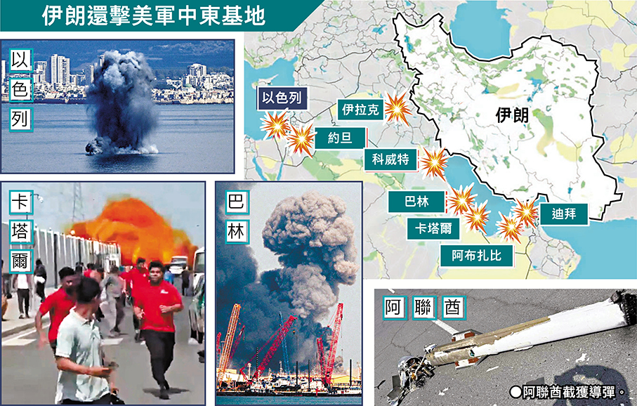 中東多國也接連傳出遇襲和爆炸報告。伊朗伊斯蘭革命衛隊表示,在伊朗發起的導彈襲擊中,至少有200名美軍人員傷亡。美媒則表示尚未收到美軍人員傷亡報告。