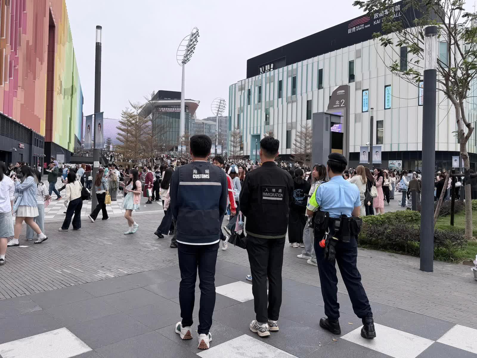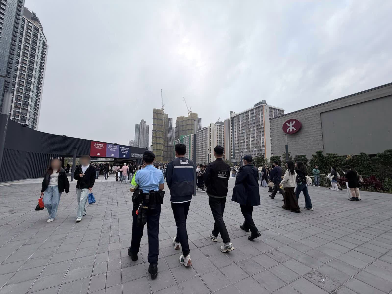香港文匯報訊(記者 蕭景源)韓國超人氣組合SEVENTEEN於2月28日及今天(3月1日),一連兩天在啟德體育園主場館舉行演唱會 — SEVENTEEN WORLD TOUR [NEW_] IN HONG KONG,上述兩晚同時另有「LCK Cup Finals 2026」在啟德體藝館內上演。盛事舉行期間,香港海關、入境處、警方、食物環境衞生署(食環署)和康樂及文化事務署(康文署),在啟德體育園附近採取聯合執法行動,打擊流動小販售賣侵權物品、非法勞工、無牌小販及非法擺賣活動,期間拘捕4名男女。