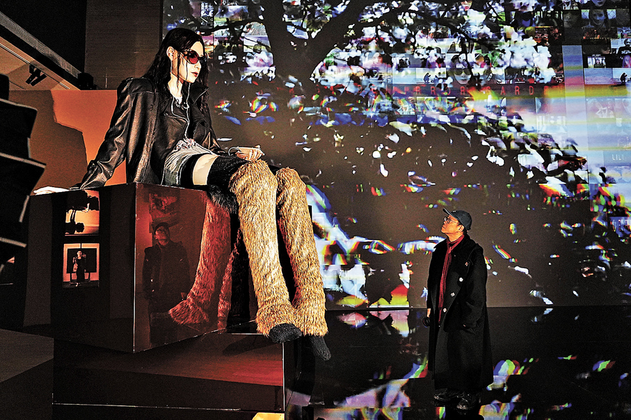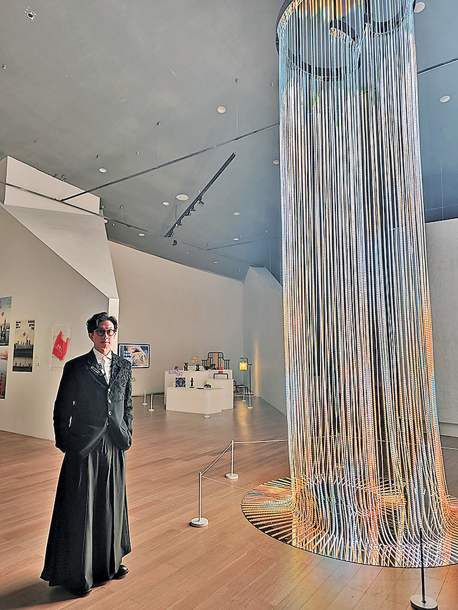 在「穿梭時空」主題展區裏,一個身高4.6米的少女戴着墨鏡、手握手機,靜靜地端坐於光影中,與身後的影像共同構成了《深夢》,成為展廳裏最受矚目的焦點之一。這個彷彿來自平行世界的少女「Lili」,是葉錦添延續了近20年的創作。她並非簡單的虛擬形象,而是他探討科技時代人類身份與城市記憶的藝術載體。「我用她來反照自己有興趣的世界、想知道的東西。」