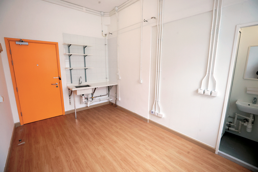 香港文匯報記者昨日受邀參觀新建成的彩石里簡約公屋,放眼望去,不時在房門、牆身、地板等見到絢爛的不同顏色,帶來活力。記者參觀1人至2人、3人至4人以及4人至5人的示範單位,空間寬闊,大窗戶有助通風採光。只見單位內除了配備電線插座和電燈、煮食空間以及獨立洗手間、淋浴間外,沒有配置其他物品和設備,亦沒有對客廳、房間等設有固定格局,由住戶自由規劃以及準備傢具、電器等。