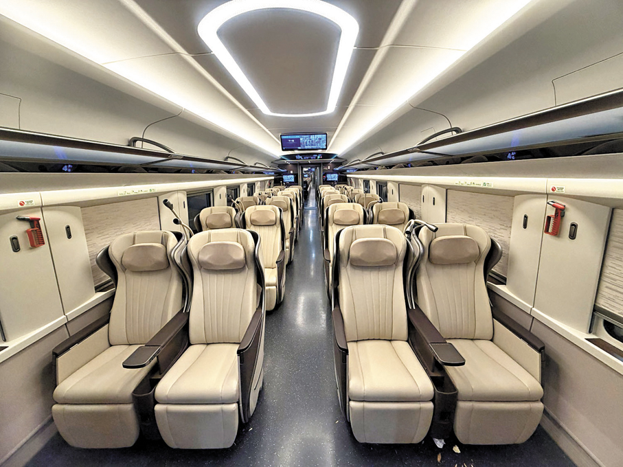 港鐵表示,作為高速鐵路(香港段)的營運者,公司一直積極與內地鐵路單位及兩地政府緊密溝通協調,推出多元化的服務和產品,以便利旅客和滿足不同需要。這次新增的「優選一等」席別車廂採用「2+2」座位布局,每張座椅採用半包圍結構及獨立私密罩設計,乘客可電動調校坐姿角度至半躺姿勢,較一等及二等座更為舒適。座位配備小桌板、衣帽鈎、閱讀燈、儲物盒及五孔插座等設施,為旅客提供更多元化的跨境服務選擇。
