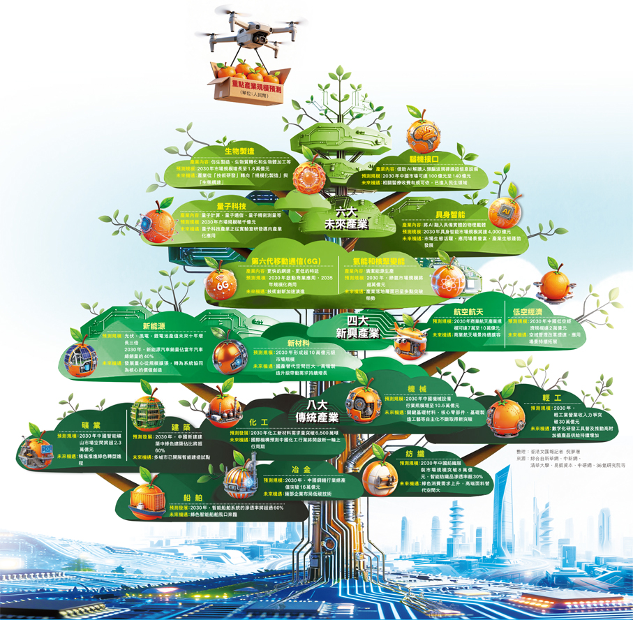 新興產業包括新能源、新材料、航空航天、低空經濟等戰略性產業集群。邢和祥說,「在『十五五』時期,新興產業預計將迎來規模化擴張期,萬億級市場空間加速成型,例如低空經濟首次被寫入五年規劃,它帶動的不僅僅是比如無人機製造商,更是整個產業鏈甚至應用端的發展。未來,會有越來越多的低空基建提速發展以及應用場景加速落地。」