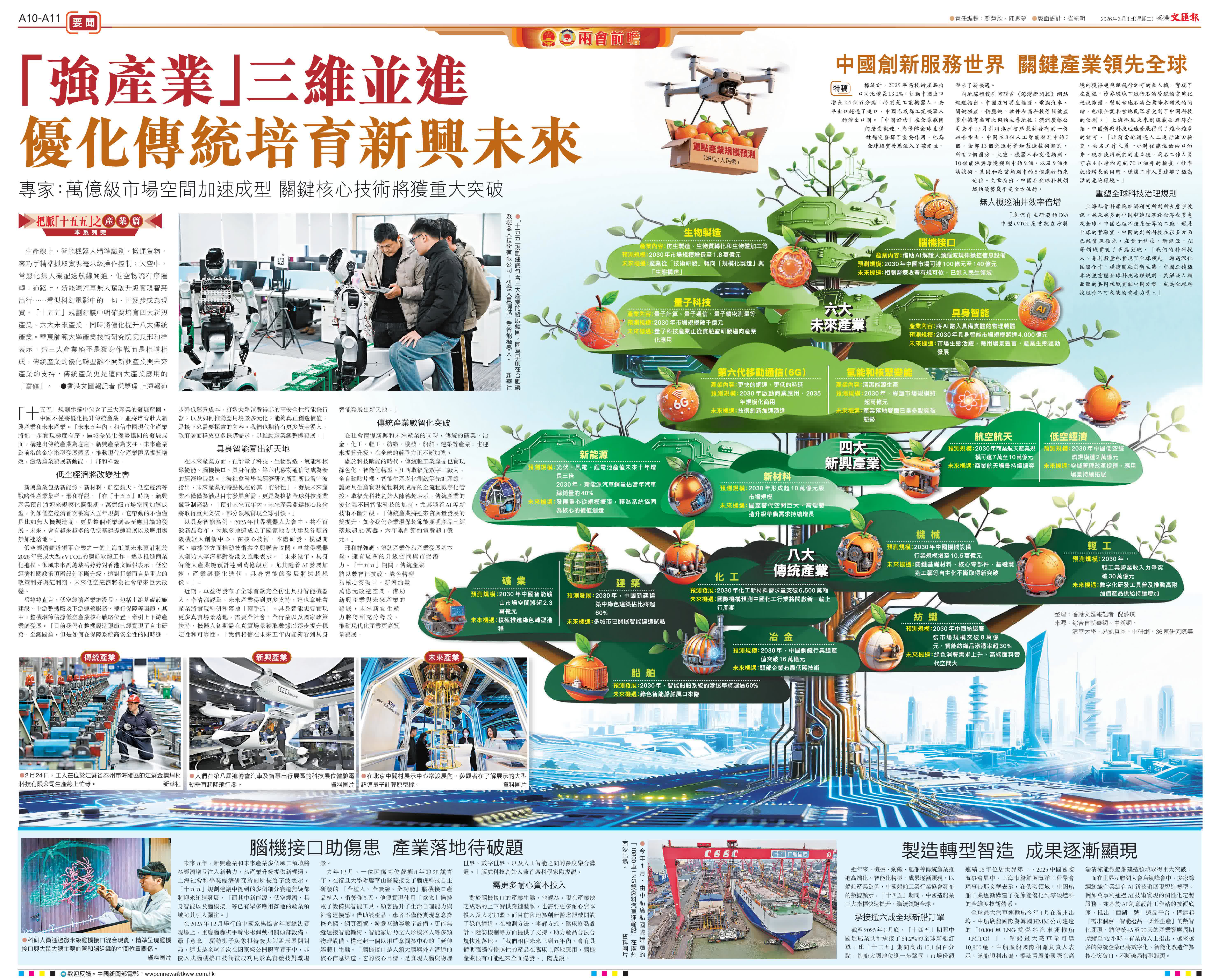 (香港文匯報記者 倪夢璟 上海報道)生產線上,智能機器人精準識別、搬運貨物,靈巧手精準抓取實現毫米級操作控制;天空中,常態化無人機配送航線開通,低空物流有序運轉;道路上,新能源汽車無人駕駛升級實現智慧出行……看似科幻電影中的一切,正逐步成為現實。「十五五」規劃建議中明確要培育四大新興產業、六大未來產業,同時將優化提升八大傳統產業。華東師範大學產業技術研究院院長邢和祥表示,這三大產業絕不是獨身作戰而是相輔相成,傳統產業的優化轉型離不開新興產業與未來產業的支持,傳統產業更是這兩大產業應用的「富礦」。