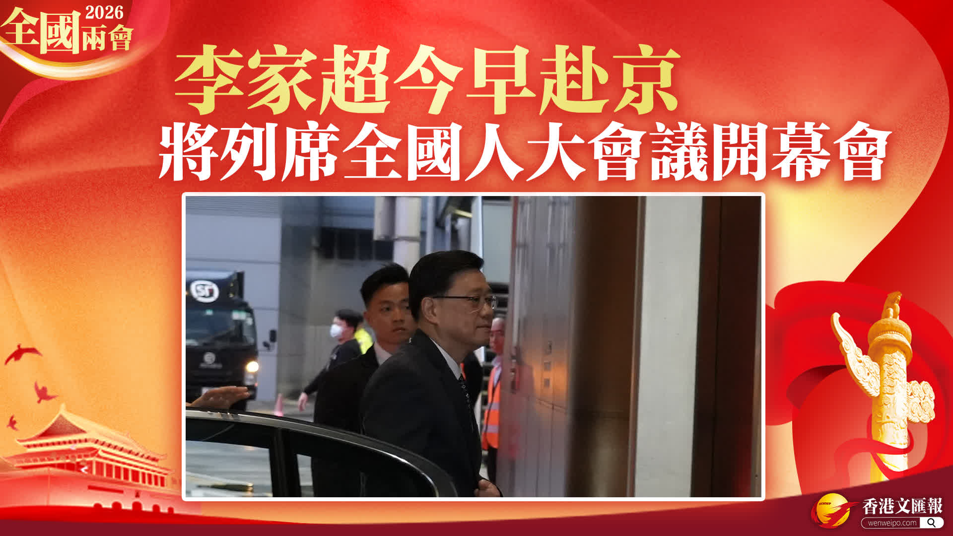 行政長官李家超今日(3月3日)前赴北京,列席3月5日舉行的第十四屆全國人民代表大會第四次會議的開幕會。他在機場向在場記者道聲「早晨」後步入機場。