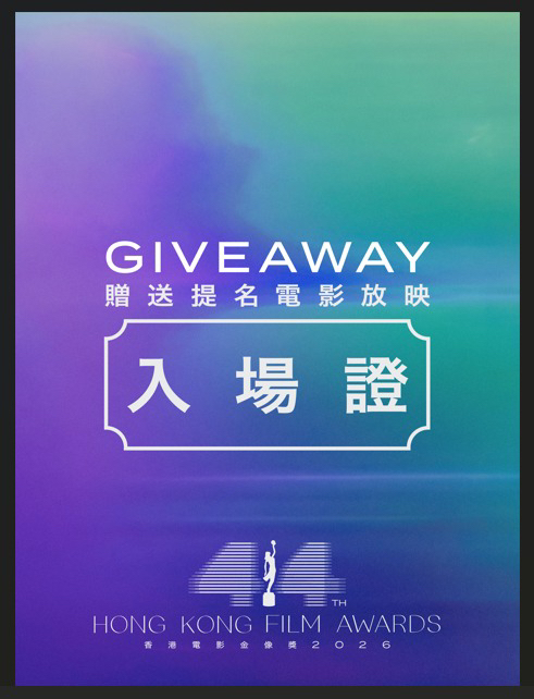 香港電影金像獎將於4月舉行,影迷也有機會在「第44屆香港電影金像獎」提名電影放映展重溫提名電影。按以下步驟,即有機會獲贈放映展入場證:
