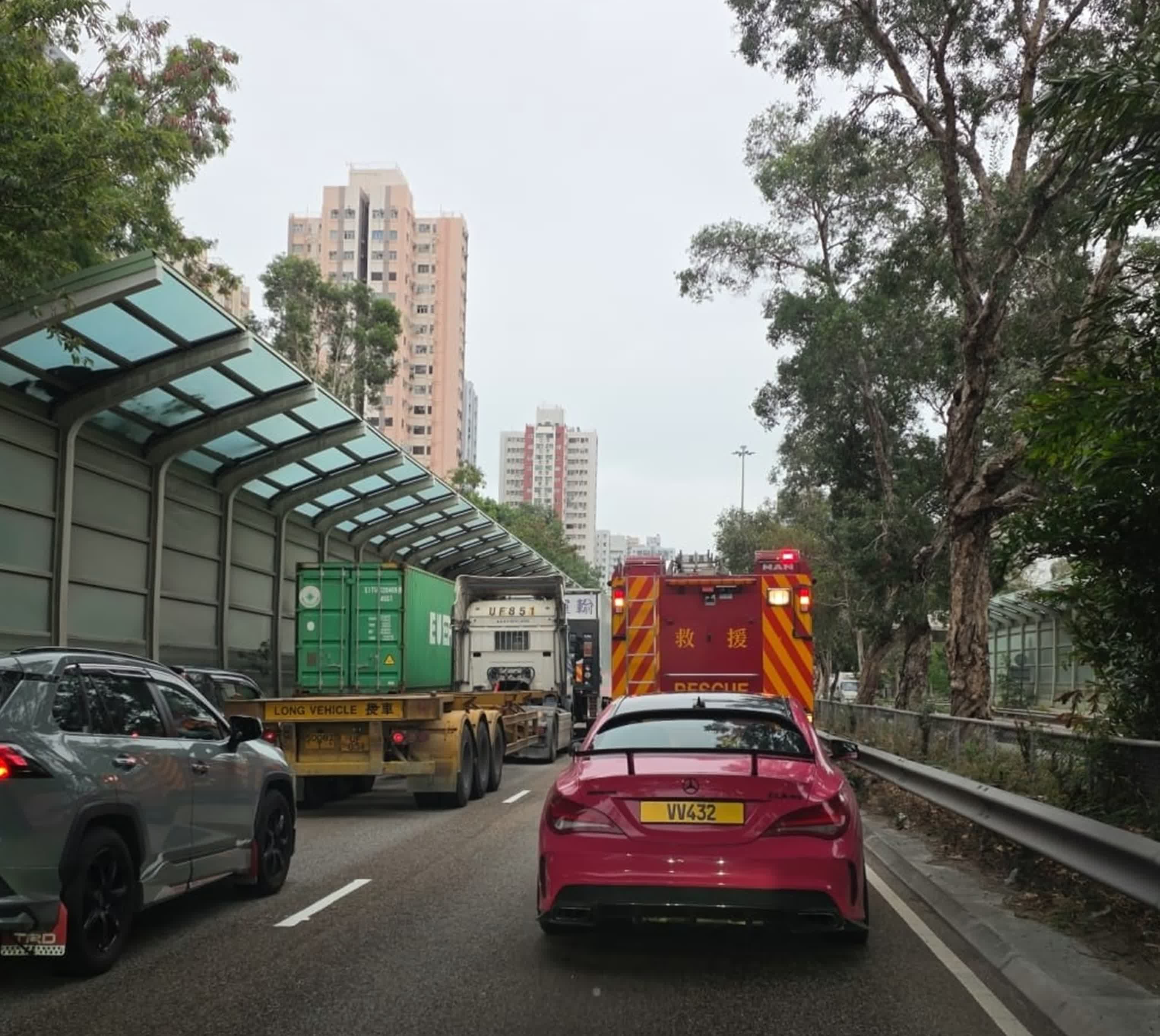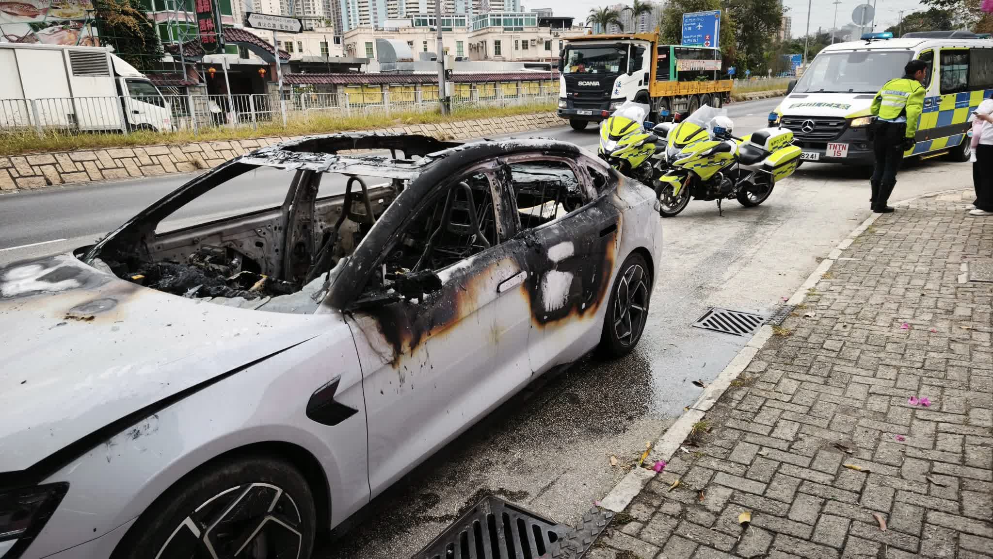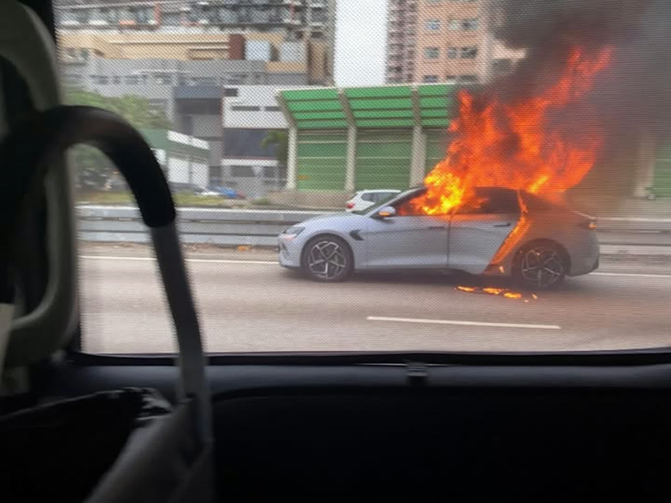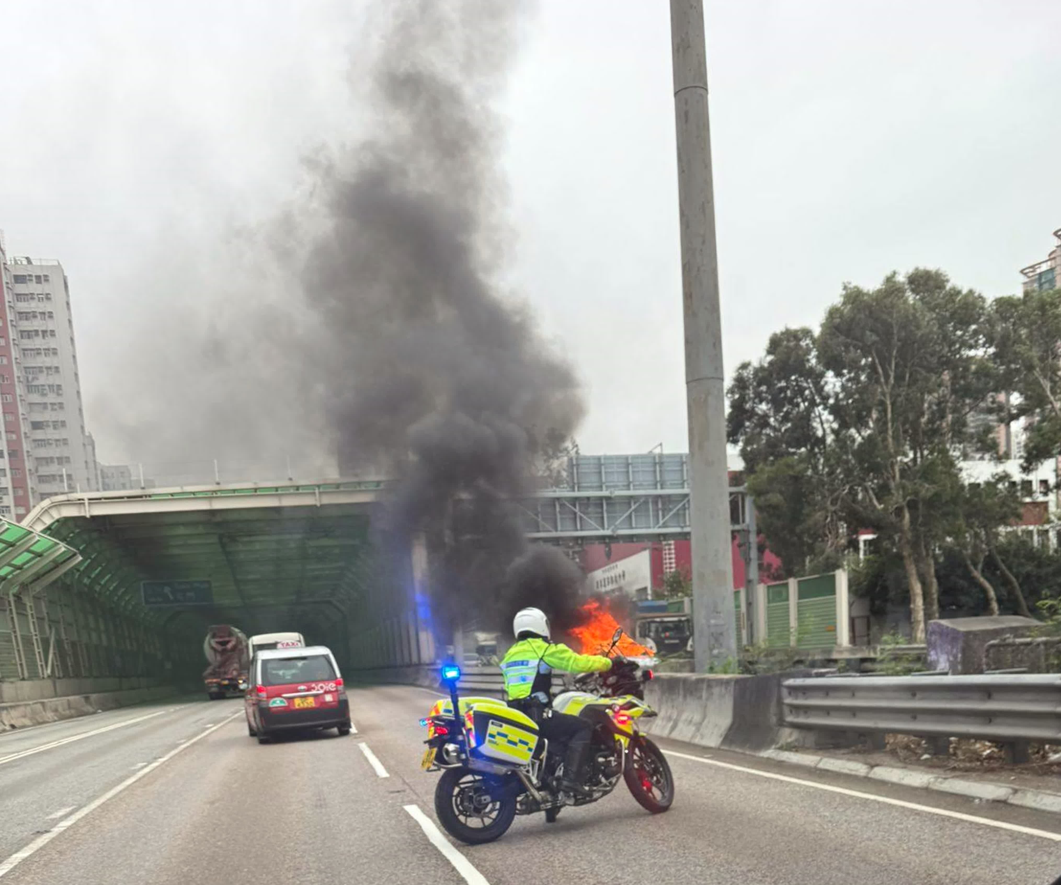 香港文匯報訊(記者 蕭景源)今日(3日)下午約2時10分,屯門公路近青田交匯處有私家車起火,火勢猛烈冒起大量濃煙。警員到場封路救援,交通受阻,車龍龍尾一度到元朗公路近丹桂村及屯門公路近三聖邨。
