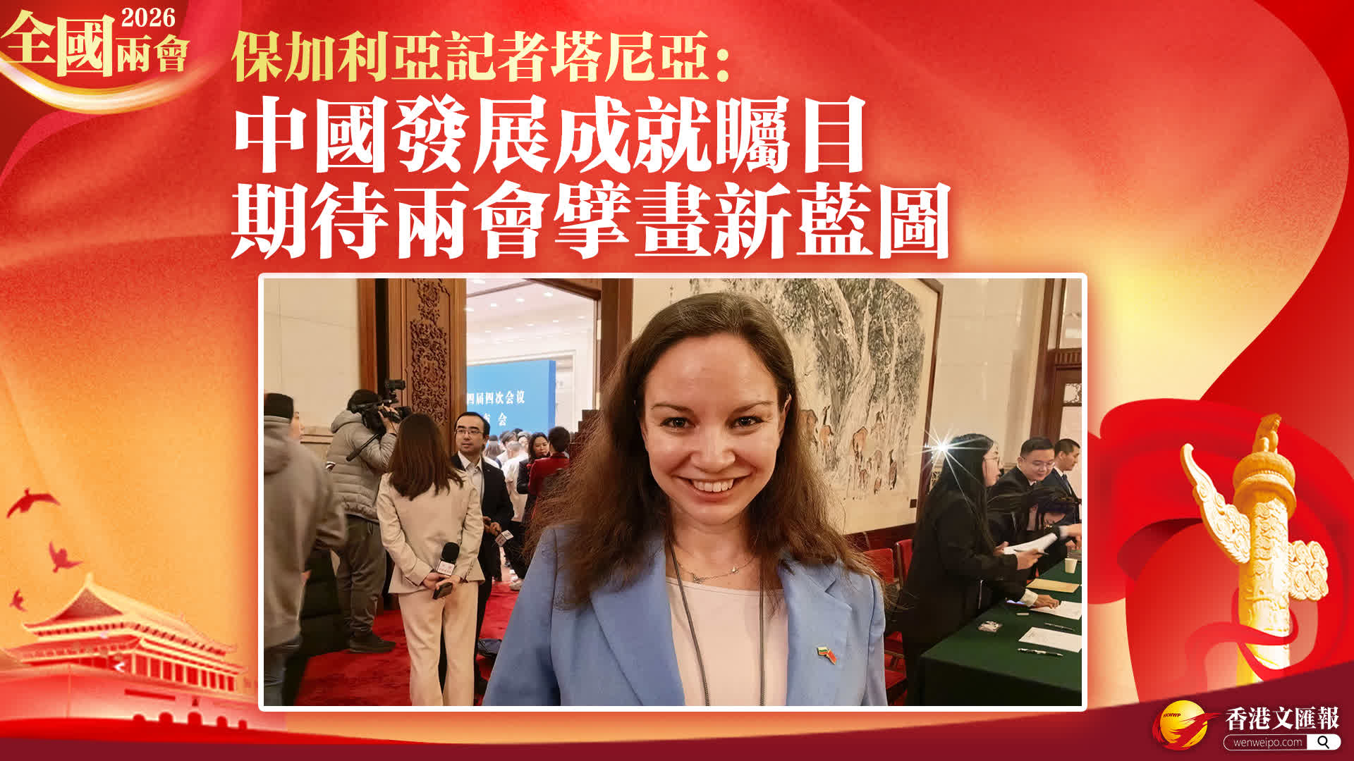 (香港文匯網記者郭若溪)3月3日,保加利亞《言論報》(DUMA newspaper)記者塔尼亞·格盧赫切娃(Tania Glouhtcheva) 在接受記者採訪時,高度評價中國發展成就與國際作用,期待全國兩會釋放經濟與外交政策信號,並向中國人民送上節日祝福。