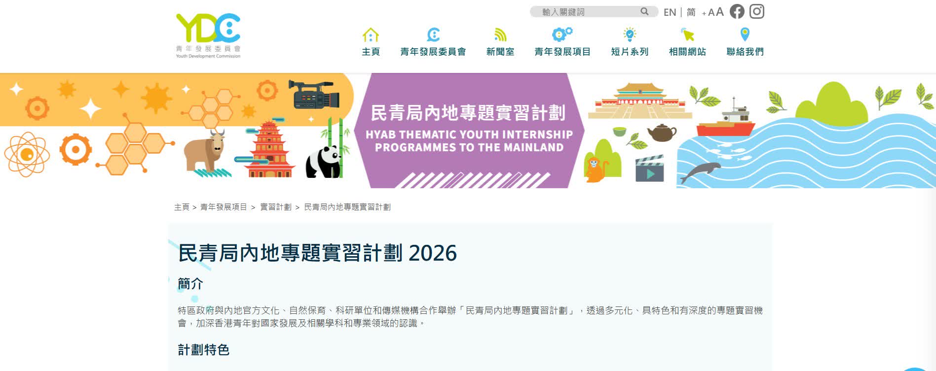 為推動香港青年認識國家,支持青年融入國家發展大局,民青局每年透過民青局內地專題實習計劃與內地相關單位合作,提供多元化、具特色和有深度的專題實習機會。除了繼續推行去年的6個實習項目外,行政長官在2025年《施政報告》宣布在青年人才培養計劃下,推出全新的傳媒專題內地實習計劃。