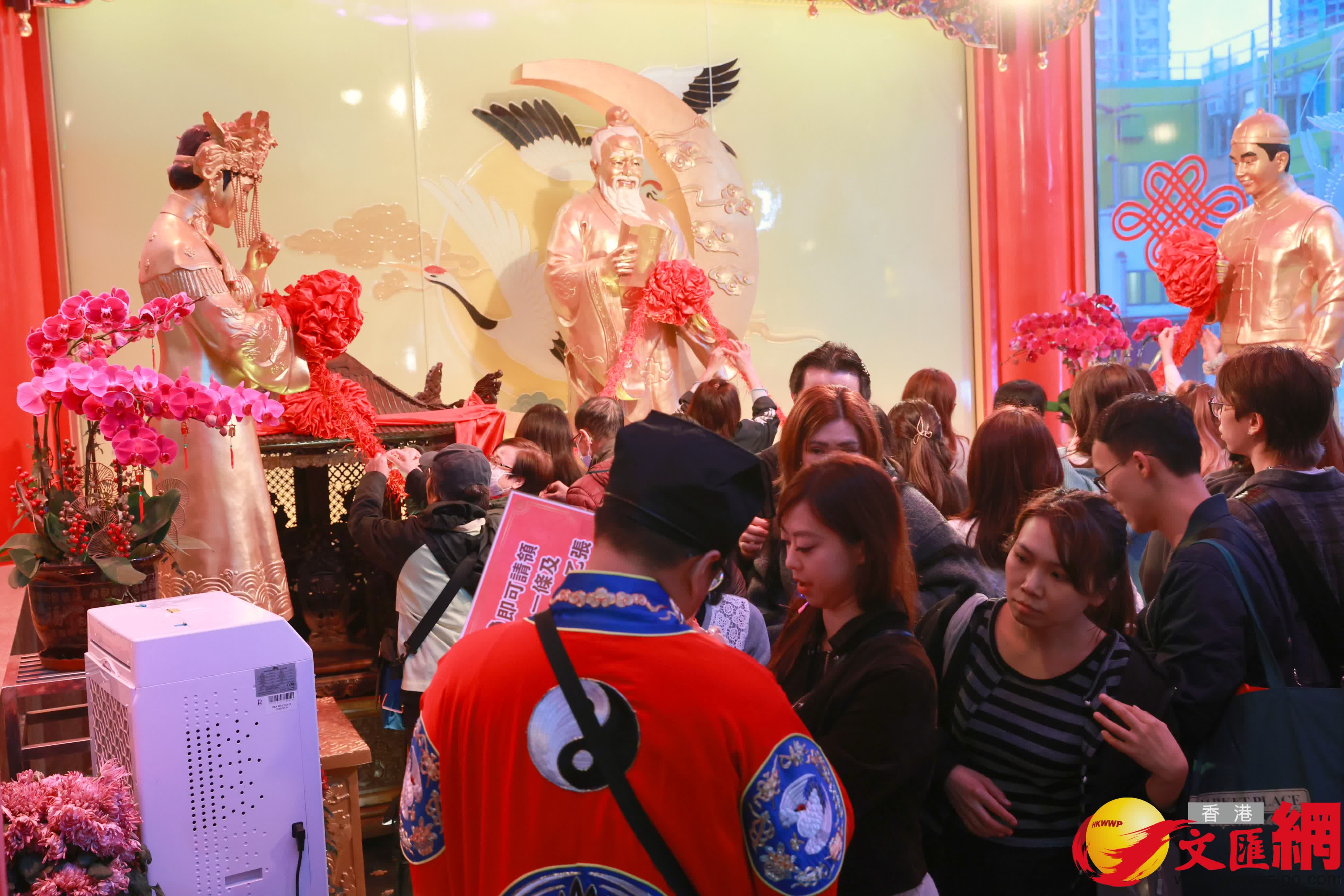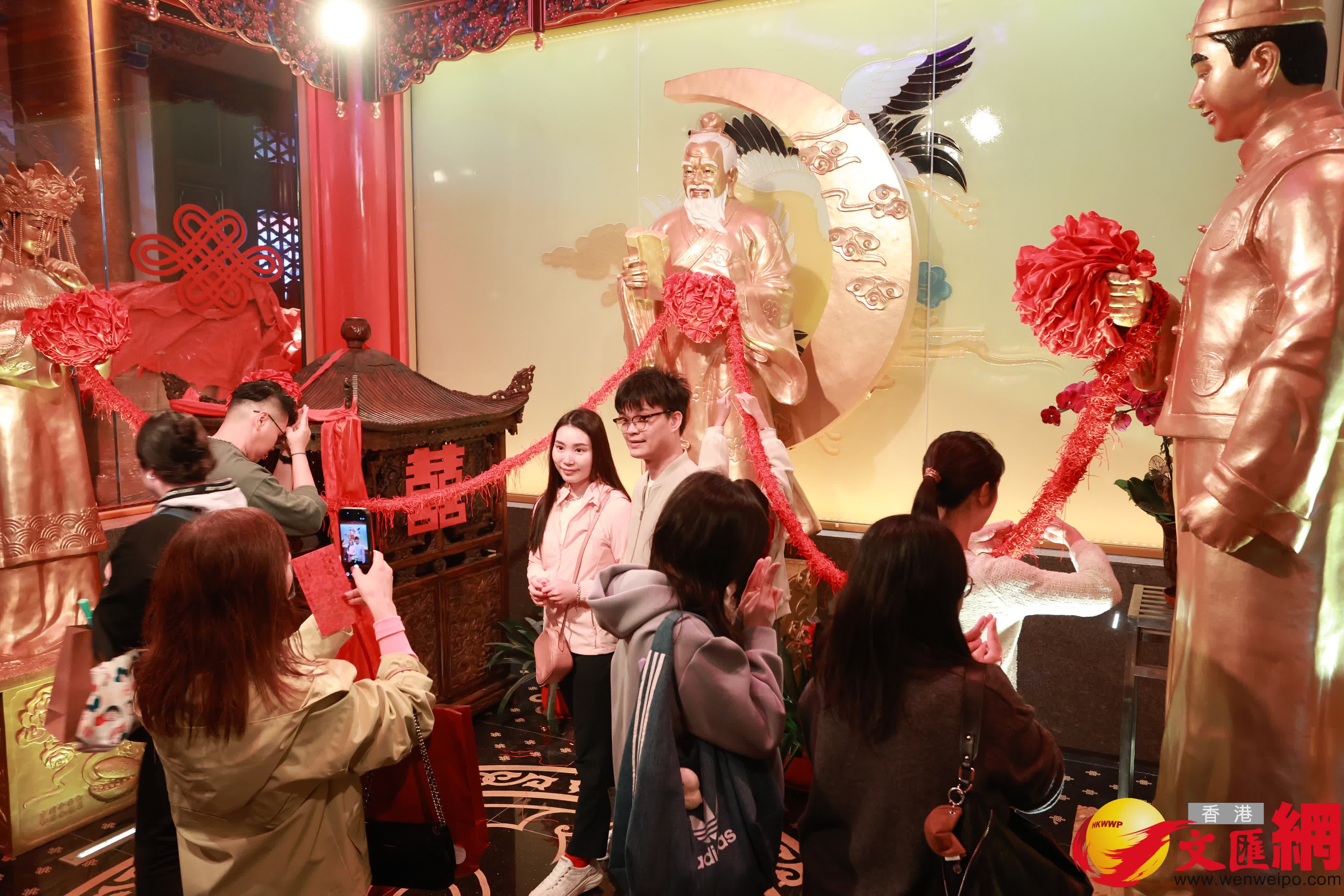 香港文匯報訊:今日(3月3日)是農曆十五元宵佳節,亦是「中國情人節」,坊間有不少求姻緣活動。嗇色園黃大仙祠每年元宵佳節有數以萬計善信特意前往月老殿,「手掐手印」參拜月老,冀獲得庇佑覓得良緣佳偶,已婚者則求幸福美滿,黃大仙祠今年續辦「丙午年元宵晚會」。