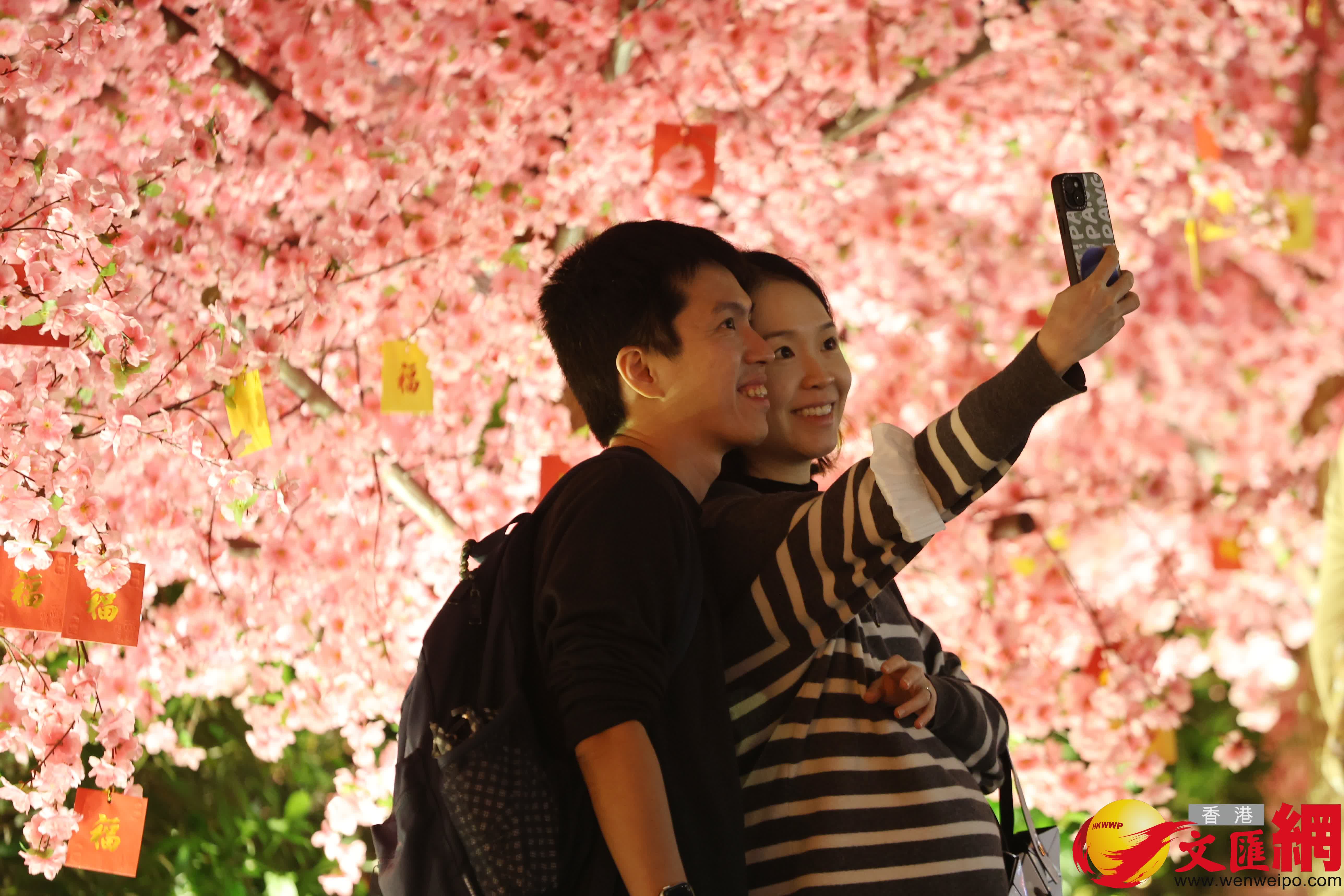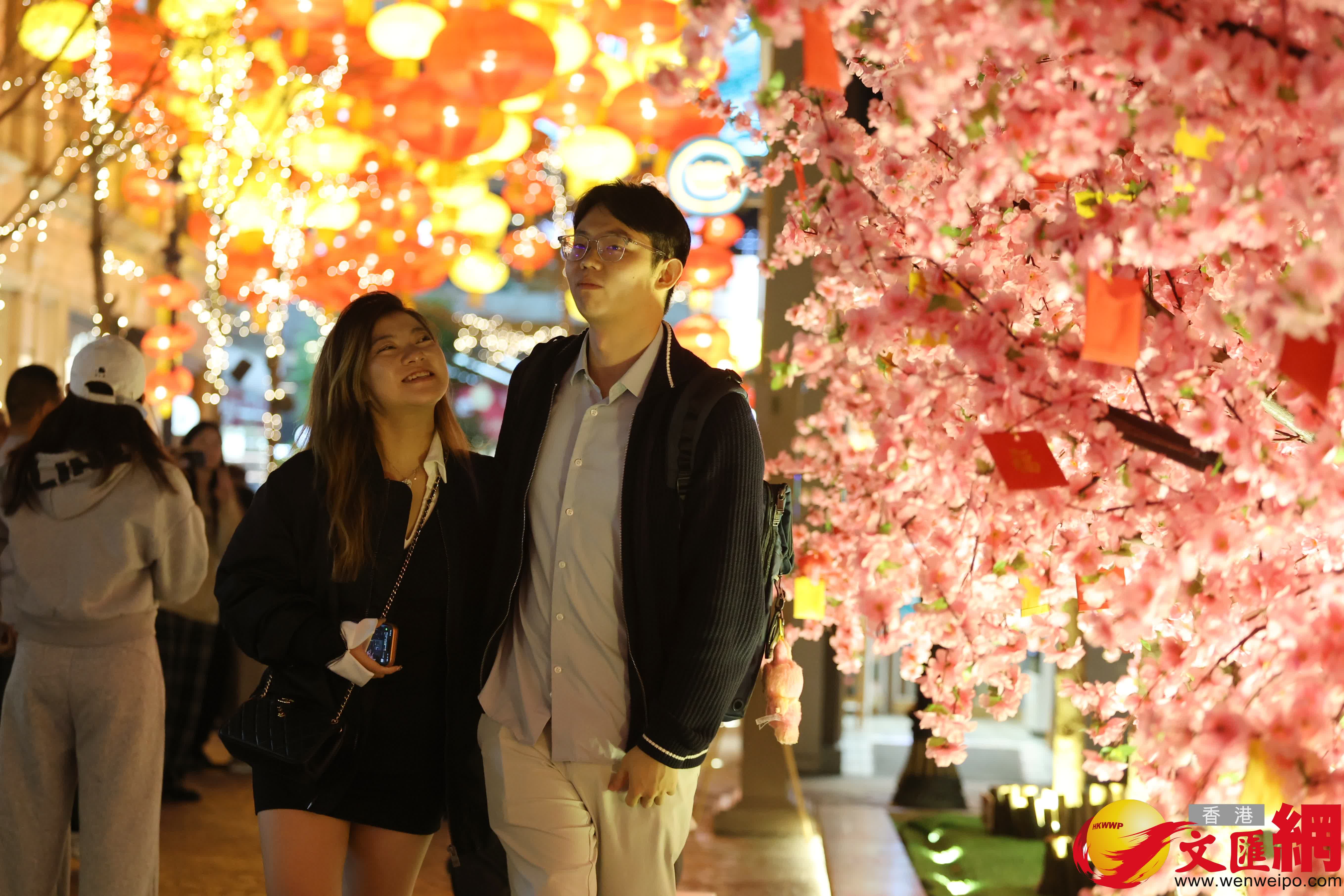 晚上園內彩燈輝映,加上現場的中國古典音樂表演,增添了一份中國式浪漫。月老廣場人頭湧湧,當中不乏年輕男女善信誠心參拜月老求姻緣。參拜月老及捐款20元,即領取「月老手繩」一條及獲贈祈願卡一張,善信可在卡上寫下心願,掛在園內的「祈願桃花樹」上,盼在月下老人見證下,皆覓得美好姻緣。