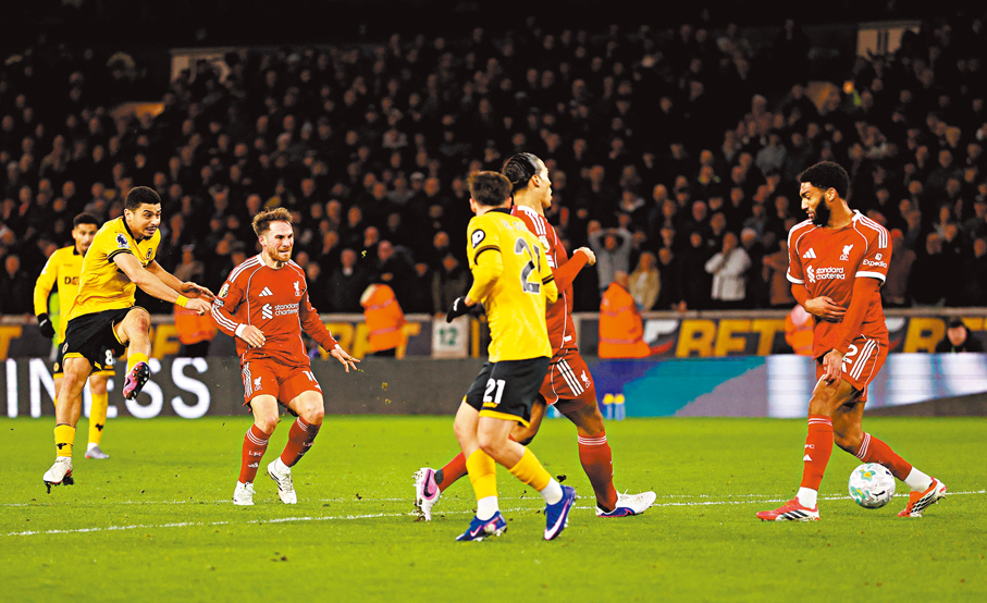 香港文匯報訊(記者 楊浩然)英超於香港時間昨日(4日)凌晨上演多場比賽,其中榜尾的狼隊意外地主場以2:1絕殺「紅軍」利物浦,燃起護級希望。