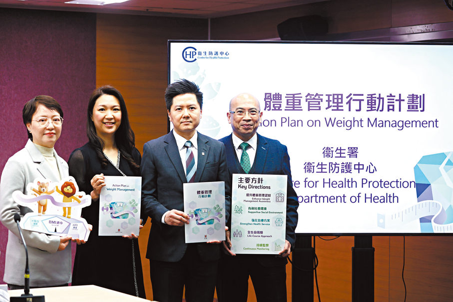香港文匯報訊(記者 吳健怡)為積極響應國家「體重管理年」的部署和世界衞生組織「遏制肥胖症加速計劃」全球框架,特區政府昨日藉着「世界肥胖日」,推出香港首份《體重管理行動計劃》,提出五項方針、合共15項具體目標,全方位推動全港體重管理。根據衞生署2020年度至2022年度人口健康調查顯示,香港逾半數成年人口屬超重甚或肥胖,另有調查則發現,逾六成半超重人士自認為體重過輕或適中,反映不少市民對自身體重狀況存在誤解。因此,計劃首年將以「提高意識」為主題,目標提高市民對肥胖的認知,遏制肥胖上升趨勢,期望在3年後可將市民的肥胖普遍率從51.3%降至五成以下。