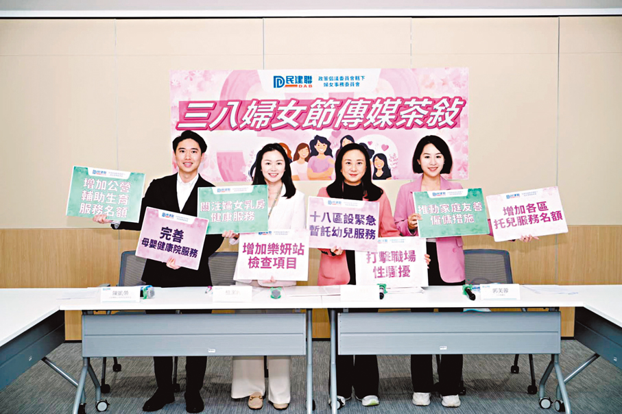香港文匯報訊(記者 黃子晉)本周日(8日)是三八婦女節,民建聯政策倡議委員會轄下婦女事務委員會昨日舉行「三八婦女節傳媒茶敍」,分享鼓勵生育、加強釋放婦女勞動力等政策倡議。委員會主席、立法會議員葛珮帆表示,樂見新一份財政預算案增加「婦女自強基金」年度撥款至3,000萬元,以促進婦女的全面發展,期望特區政府進一步投放更多資源鼓勵生育,建議從政策頂層設計上作深入研究,制定針對性的人口政策。