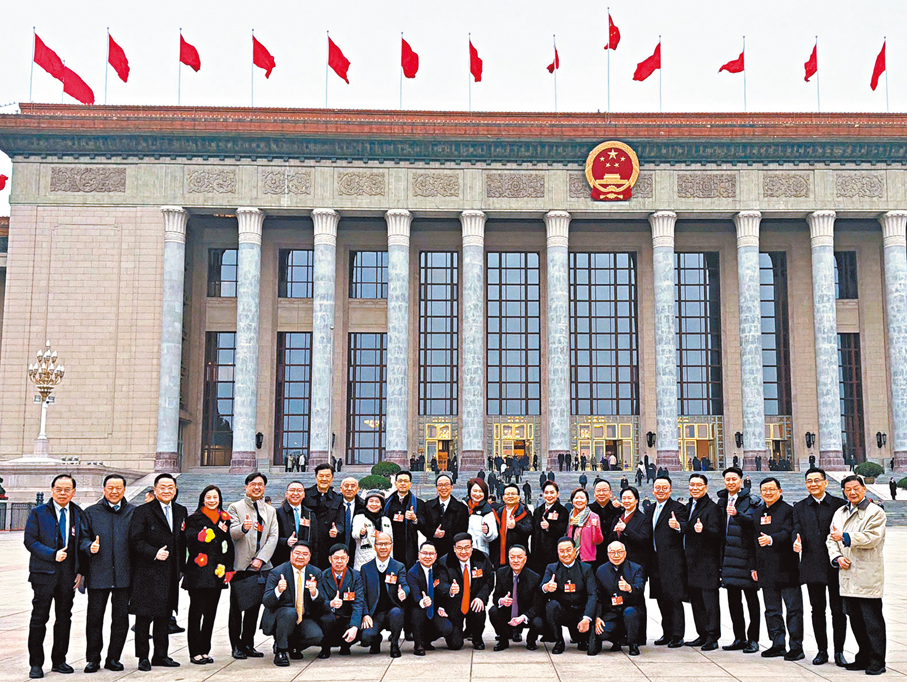 3月4日,十四屆全國人大四次會議在北京人民大會堂舉行預備會議。圖為會前,香港特區全國人大代表合影。中通社