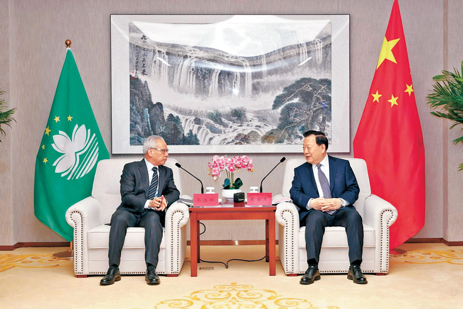 夏寶龍表示,岑浩輝行政長官帶領特區管治團隊堅決貫徹落實習近平主席關於港澳工作的重要講話精神和中央決策部署,銳意改革、奮發進取,堅定維護國家安全,推動公共行政改革,積極參與粵港澳大灣區建設,特區各項事業取得新進步。去年12月習近平主席聽取行政長官述職報告時強調,澳門要主動對接國家「十五五」規劃。十四屆全國人大四次會議即將審查「十五五」規劃綱要草案,相信特區政府和社會各界一定會把握機遇,着眼國家發展大局,立足澳門自身實際,制定好澳門「三五」規劃,堅持和完善行政主導,不斷提升依法治理效能,更加積極推進經濟適度多元發展特別是橫琴粵澳深度合作區建設,不斷彰顯澳門「一中心、一平台、一基地」作用,在融入和服務國家發展大局中實現更好發展。