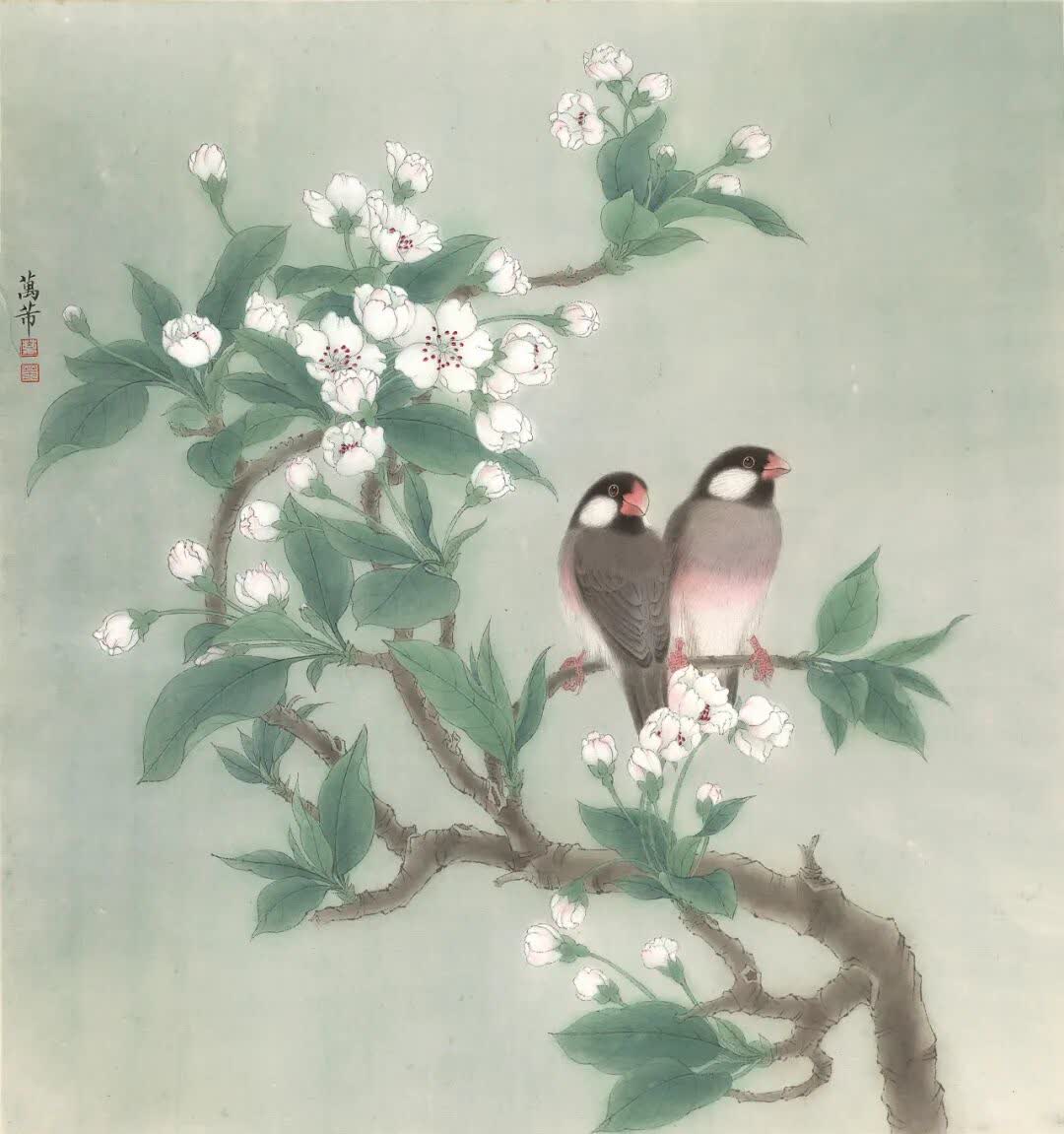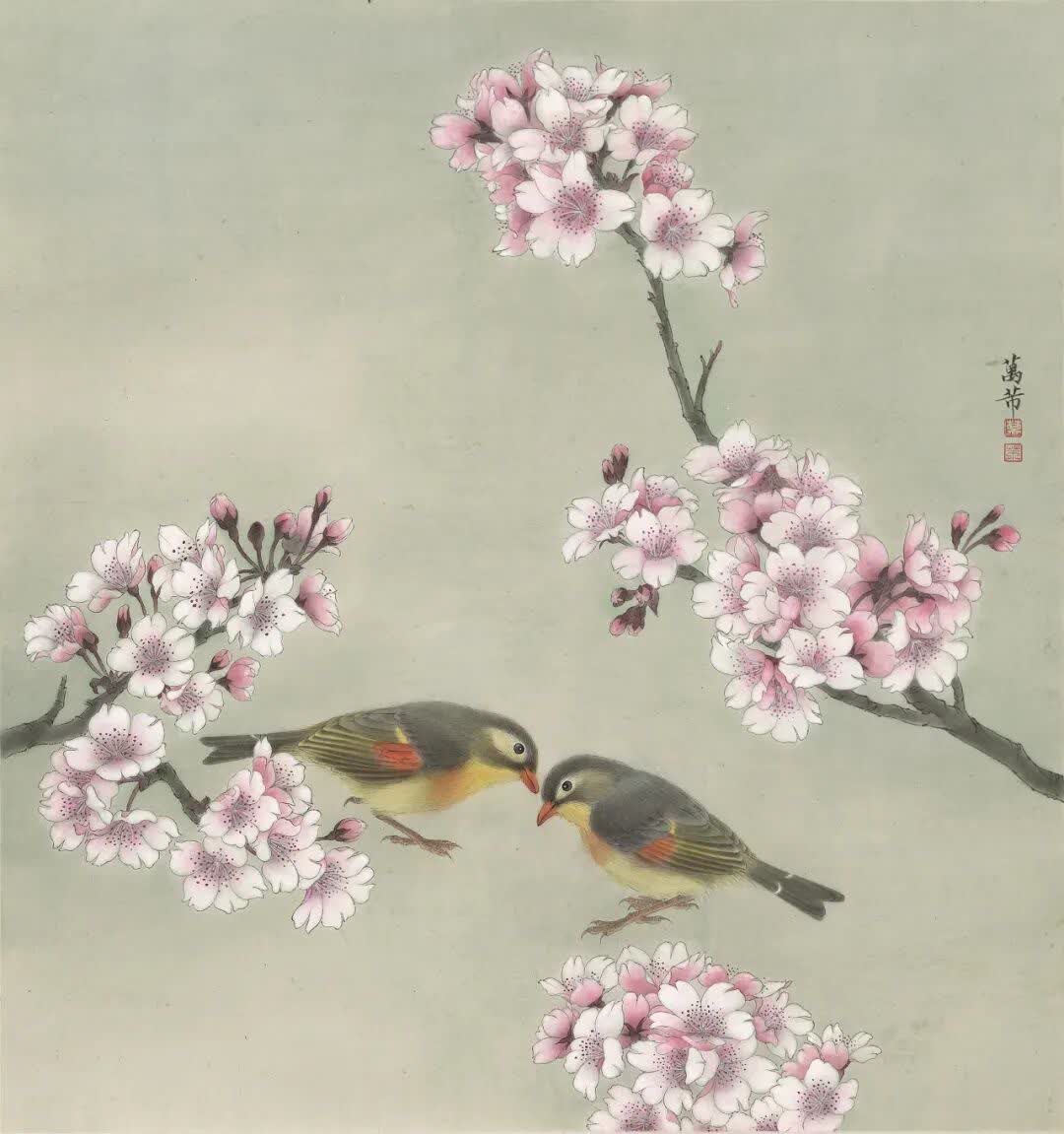 萬芾是上海實力派花鳥畫家,她筆下「花鳥世界」中的二十四節氣,作品色彩豐富,構圖現代而不失傳統韻味。