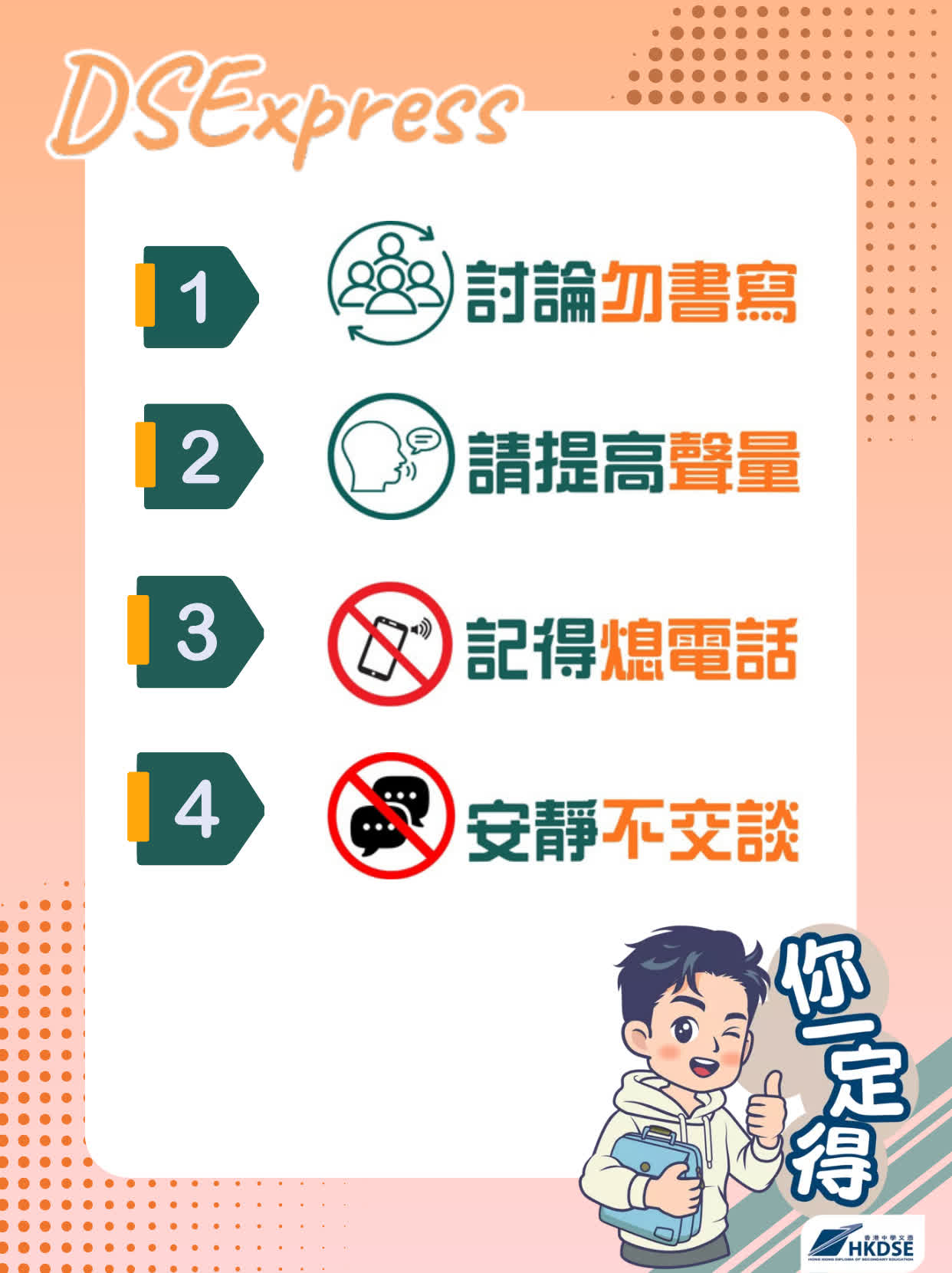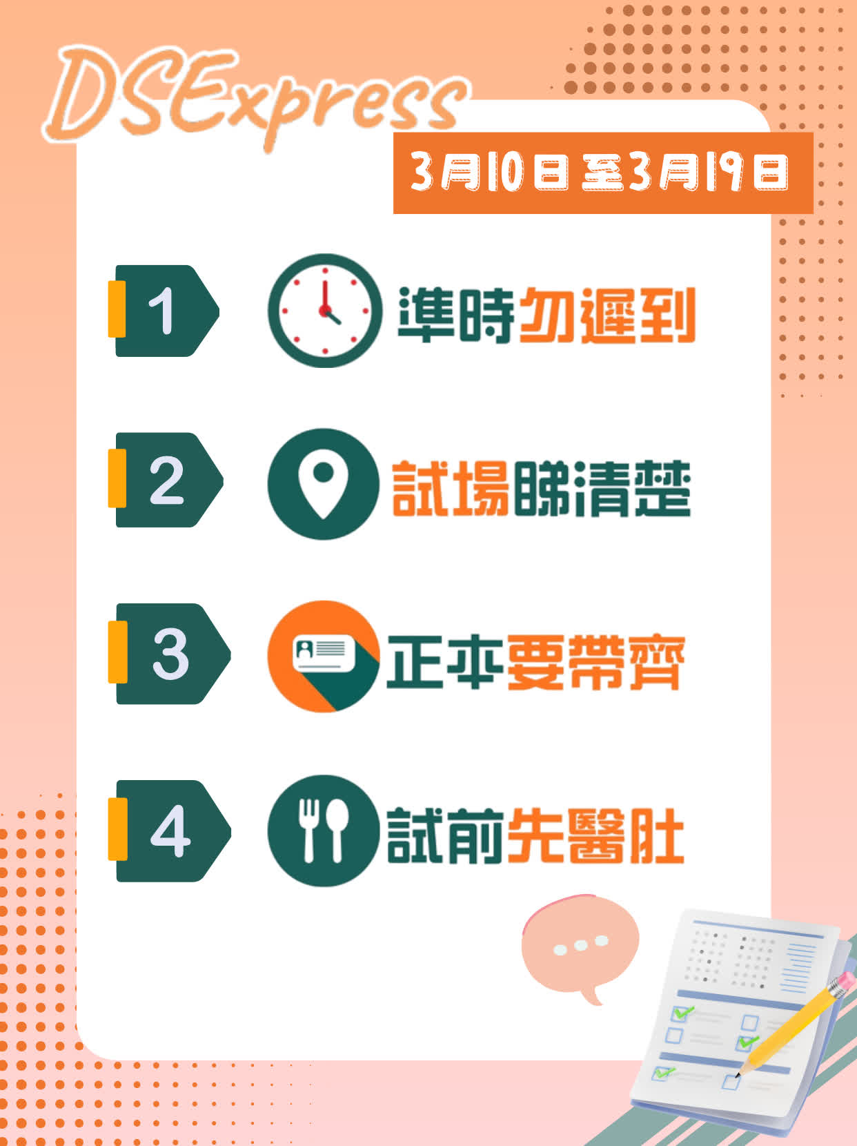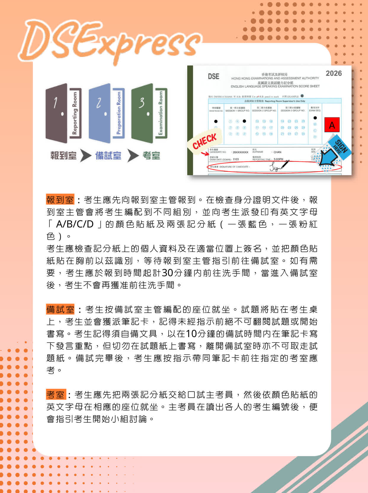 香港中學文憑試(DSE)英國語文科口試將於下周二(3月10日)至3月19日舉行。香港考試及評核局今日在「文憑試快線」網頁上載「2026 DSE點部署:醒你英文口試小貼士」,提醒應屆考生除了勤練英語說話能力,亦須留意以下應試要點,作好充分準備。香港文匯報特別整理懶人包,幫助考生備試提速增效。