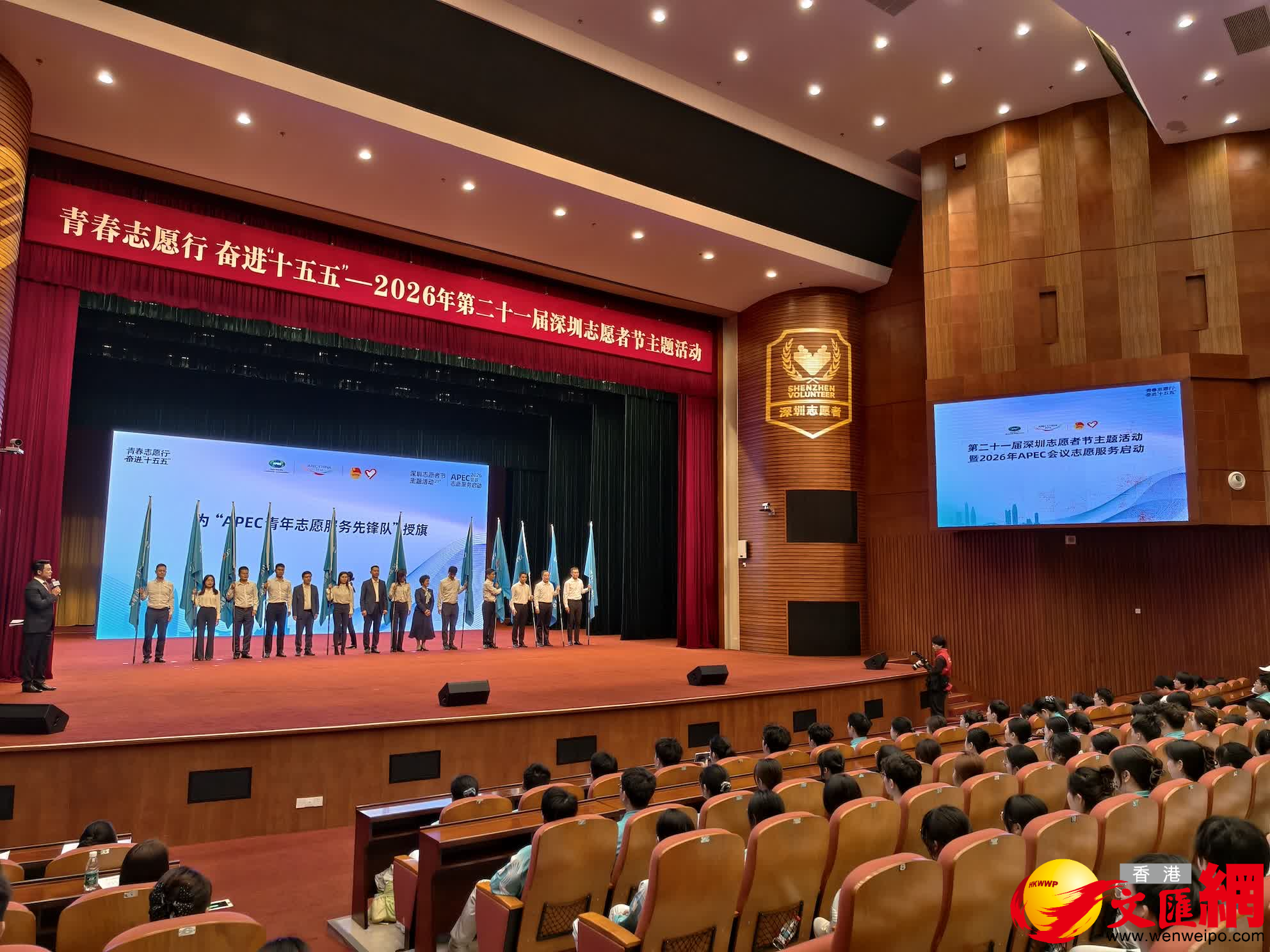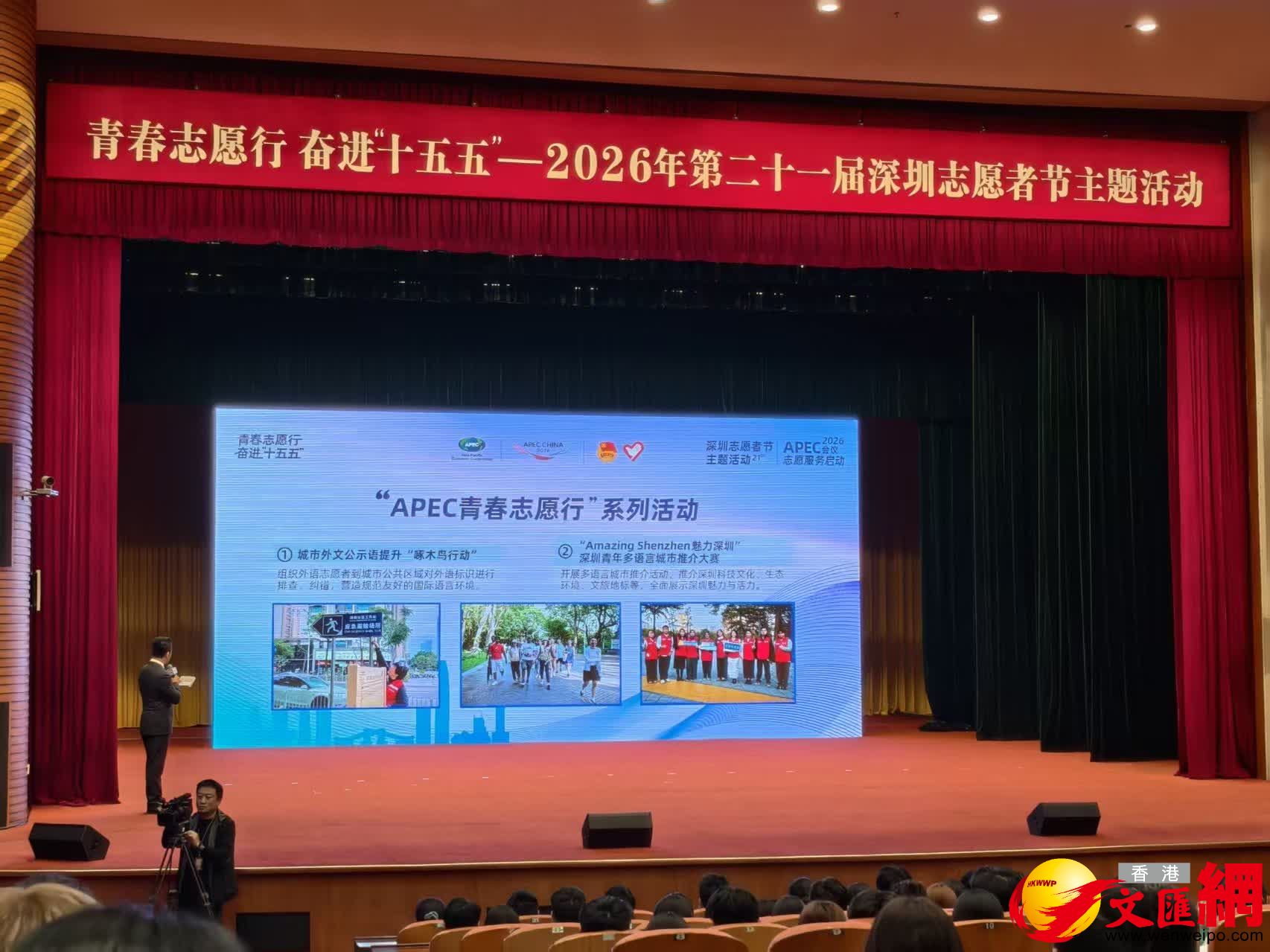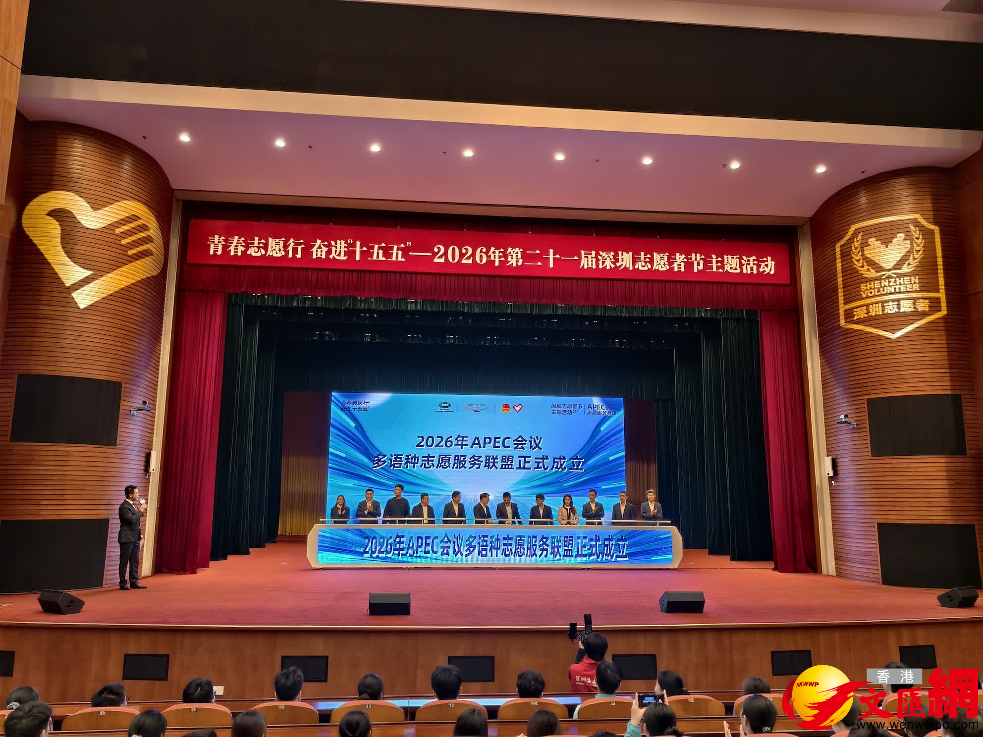 (香港文匯網記者胡永愛)3月5日,2026年APEC會議志願服務啟動活動在深圳會堂舉行。活動中,「志願深圳」小程序英文版和APEC志願服務專區正式上線,並啟動了城市外文公示語提升的「啄木鳥行動」,現場還為深圳市各區及高校等組成的「APEC青年志願服務先鋒隊進行授旗儀式,為即將到來的APEC會議做好全面而充分的志願者服務準備。