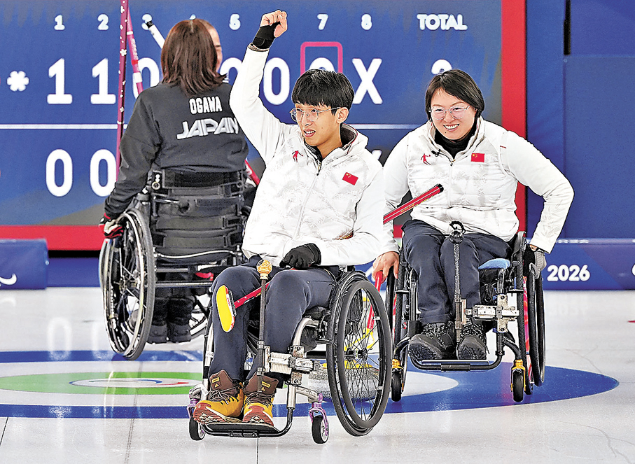 香港文匯報訊 據新華社報道,2026米蘭冬殘奧會於當地時間4日開賽,中國組合王蒙/楊金橋在率先進行的輪椅冰壺混合雙人項目首輪比賽,以10:3戰勝日本組合小川亞希/中島洋治,為中國代表團取得今屆賽事「開門紅」。
