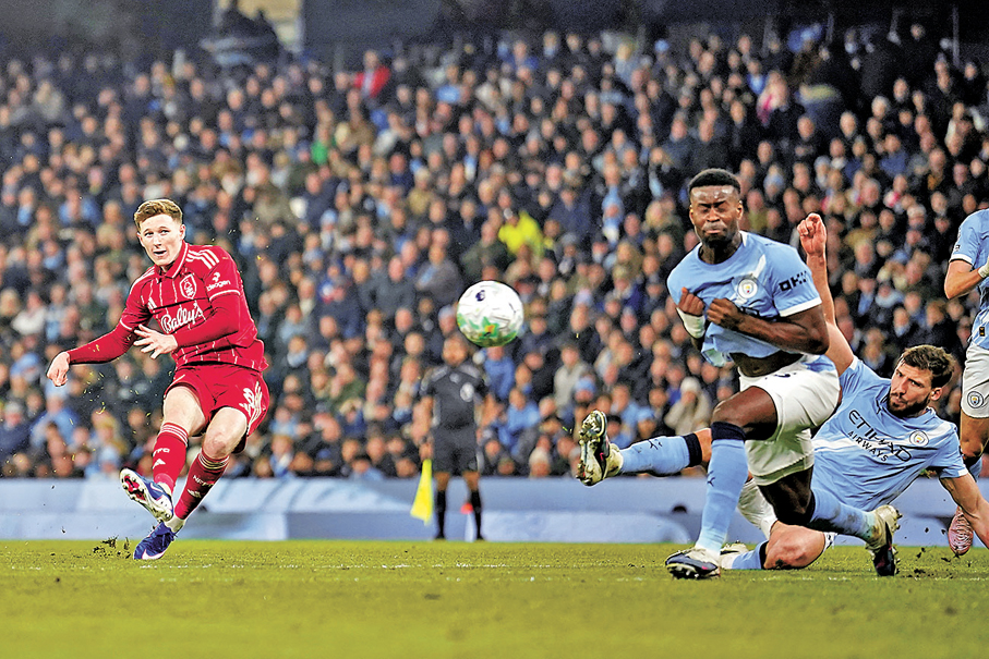 76分鐘森林中場艾利洛安達臣在禁區外施射入網,扳平2:2。曼城其後狂攻不果,補時階段雖有一次絕佳機會,卻被對方後衛在門前解圍,最終在主場慘失兩分。