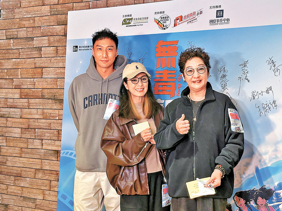 香港文匯報訊(記者 子棠)黃文標、米雪、雪梨和一對兒女徐偉棟及徐穎堃、周曉彤(Ivy)等,前晚出席《無毒新境界》禁毒電影創作比賽首映禮。