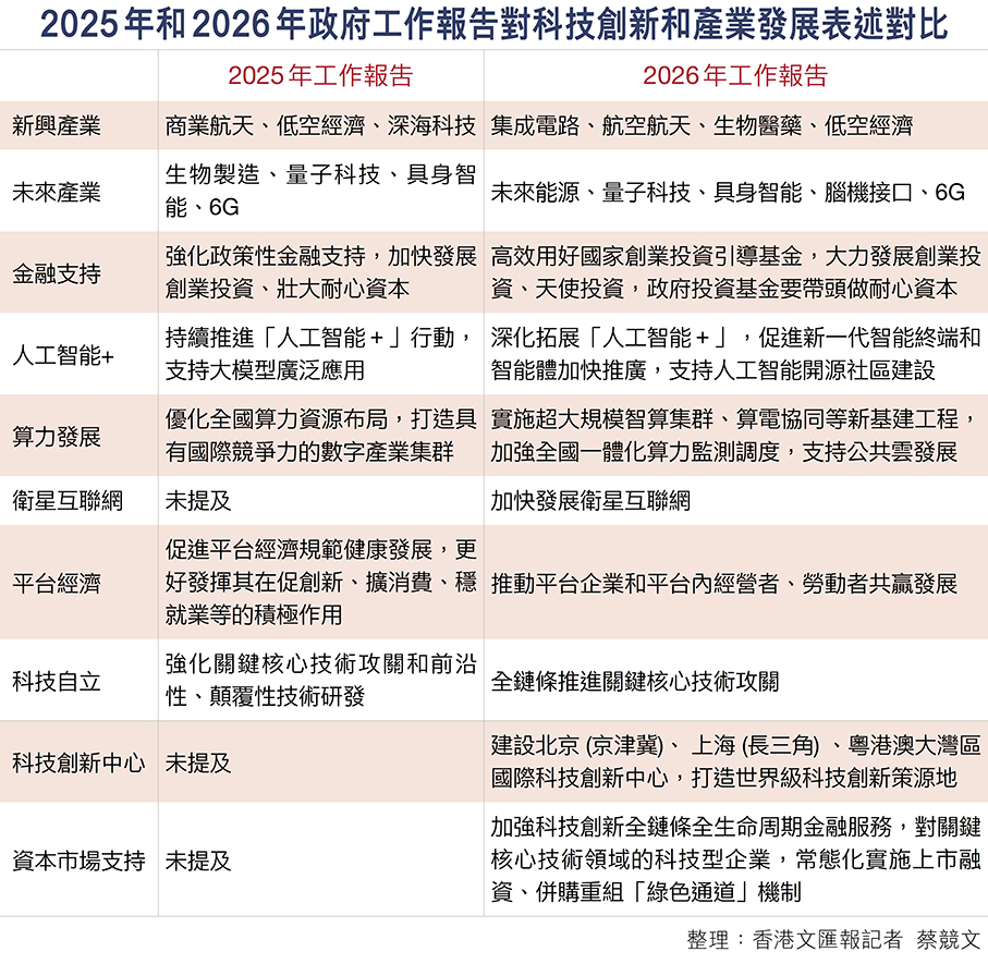 2025年和2026年政府工作報告對科技創新和產業發展表述對比