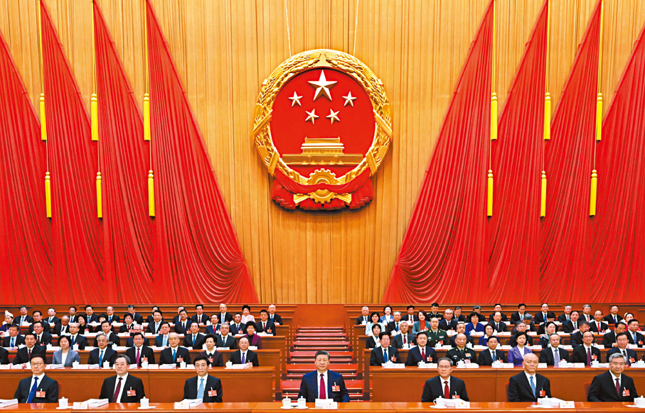 習近平、李強、王滬寧、蔡奇、丁薛祥、李希、韓正和大會主席團成員在主席台就座。