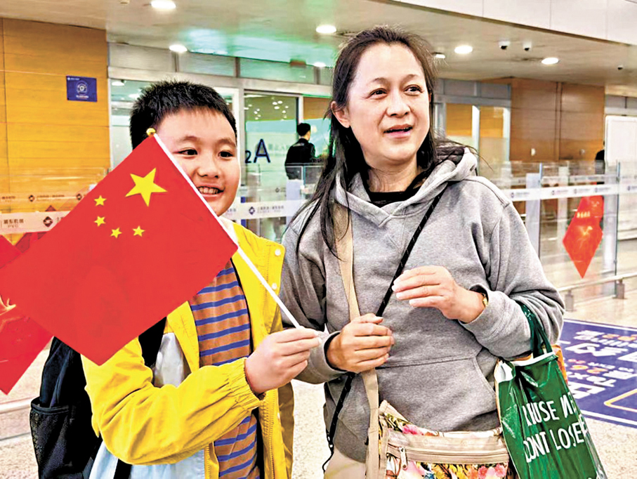 9時44分,EK304航班穩穩滑行停靠廊橋,不少從機艙走出的中國乘客在看到媒體鏡頭時,都忍不住滿臉笑意的揮手,有乘客難掩激動說,「終於回來了,我愛祖國。」金先生和熊女士這次帶孫兒一起出遊。小金說,2月28日正在外遊玩的他們聽到爆炸聲,一開始以為是一旁工地的鋼筋掉落,後來才發現是攔截導彈。他們原本訂了3月2日回國的機票,1日被通知航班取消後,他們在搶票的同時,甚至考慮坐車去阿曼,再從阿曼轉機回國。熊女士說,看到自己訂的飛上海航班沒取消,心才落地。