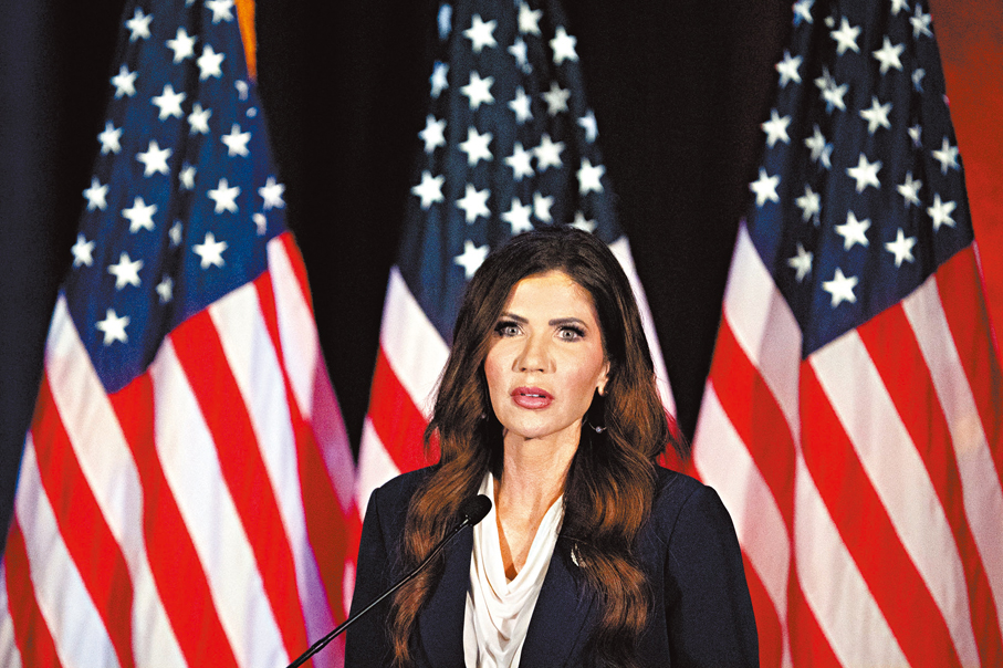 香港文匯報訊 美國總統特朗普3月5日在名下社媒Truth Social宣布,撤換備受爭議的國土安全部部長諾姆,並提名俄克拉何馬州聯邦參議員馬林接任,任命於3月31日生效。特朗普表示,諾姆將轉任新設立的「美洲之盾特使」,該職位是為配合即將宣布的西半球安全倡議而設。
