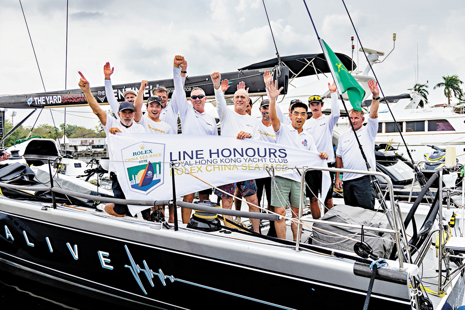 香港文匯報訊 Phillip Turner及陳維澤旗下的Reichel/Pugh 66型「Team Alive—Rampage號」,周五(6 日)在蘇碧灣衝線,成功在2026年勞力士中國海帆船賽奪得衝線冠軍。