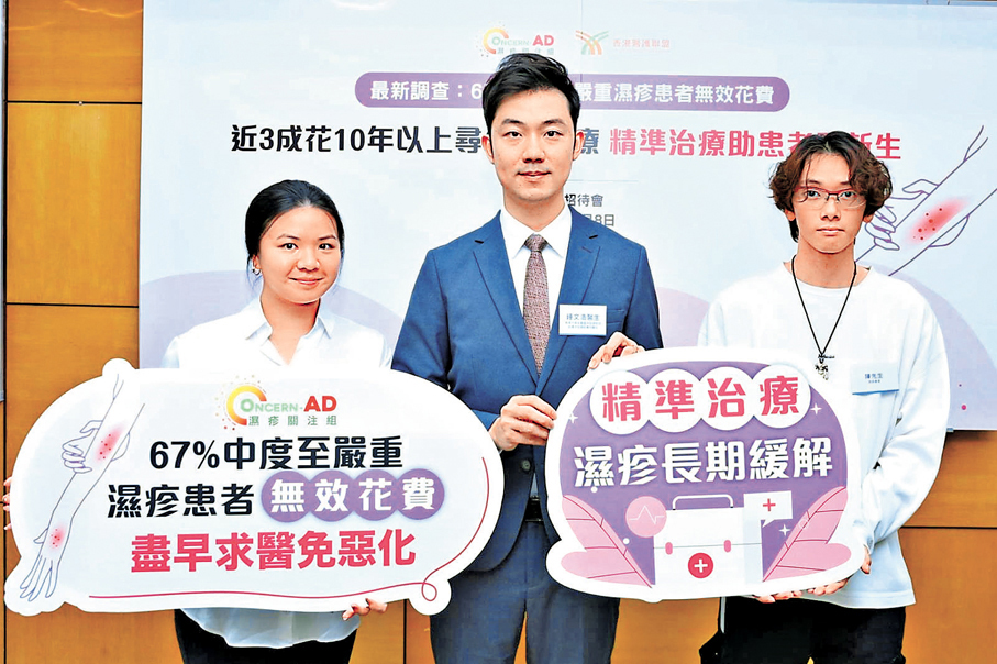 早前舉行的記者會,皮膚及性病科專科醫生鍾文浩強調濕疹並非單純的皮膚過敏,可以由「二型炎症」引起的免疫系統失調,導致皮膚屏障崩解及炎症惡性循環。他指出現時精準治療(包括注射生物製劑及口服JAK抑制劑)透過基礎及臨床研究找出促發濕疹的因數,阻止炎症的惡性循環。針對中重度患者,若傳統治療無效,及早轉用精準治療能及早改善生活質素,令濕疹症狀得以緩解。